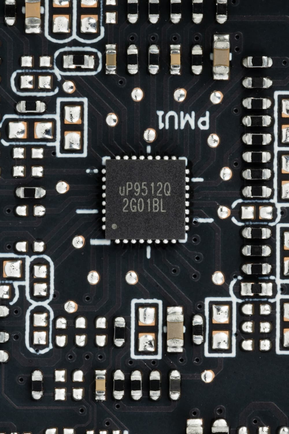 Питанием микросхем памяти управляет ШИМ-контроллер uP9512Q (uPI Semiconductor).