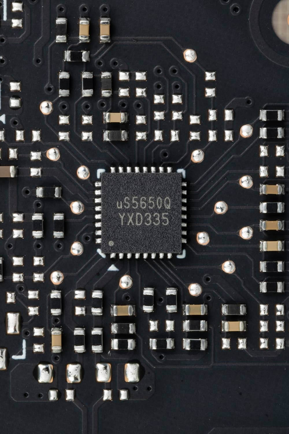 Также на лицевой стороне платы имеется контроллер uS5650Q (uPI Semi), который отвечает за мониторинг карты (отслеживание напряжений и температуры).