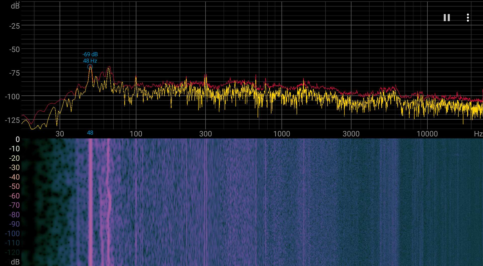Спектрограмма шума достаточно ровная.