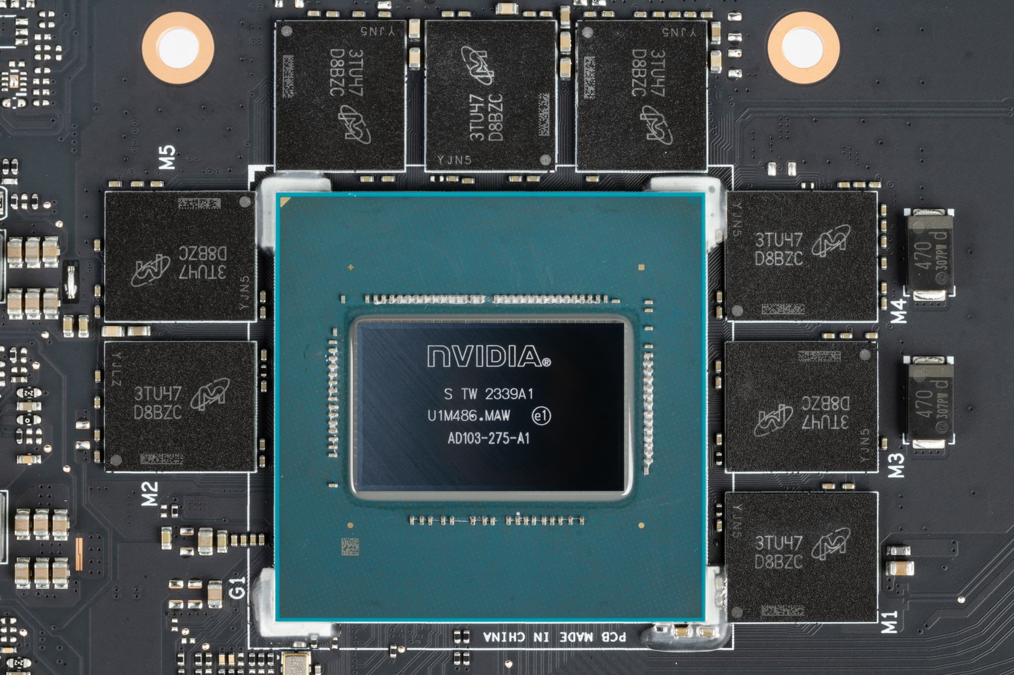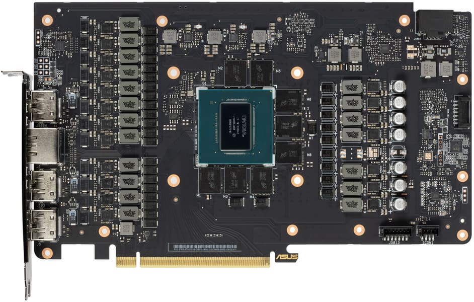 Карта имеет 16 ГБ памяти GDDR6X SDRAM, размещенной в 8 микросхемах по 16 Гбит на лицевой стороне PCB. Микросхемы памяти Micron (MT61K512M32KPA-21/D8BZC) рассчитаны на номинальную частоту работы в 2625 (21000) МГц.