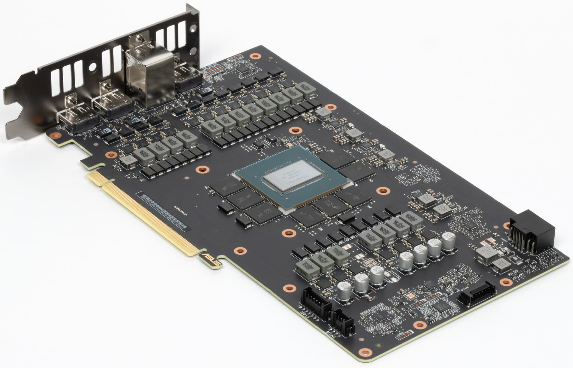 Также стоит отметить, что у платы не обычные 4, а 5 видеовыходов: добавлен еще один HDMI 2.1. Однако GPU позволяет выводить картинку одновременно только на 4 монитора, поэтому такое решение просто обеспечивает бо́льшую гибкость при выборе видеовыходов.