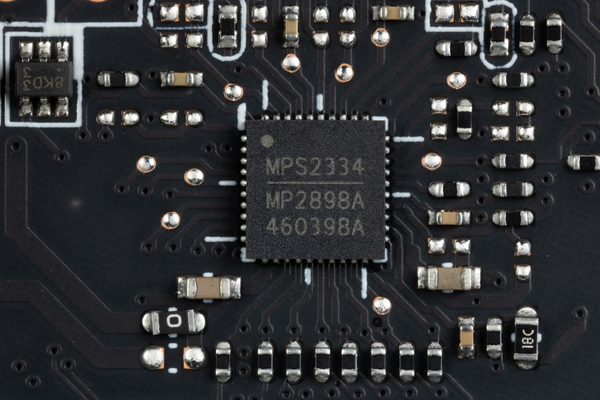 16 фазами питания ядра управляет ШИМ-контроллер MP2898A (Monolithic Power Systems). Он рассчитан максимум на 16 фаз.