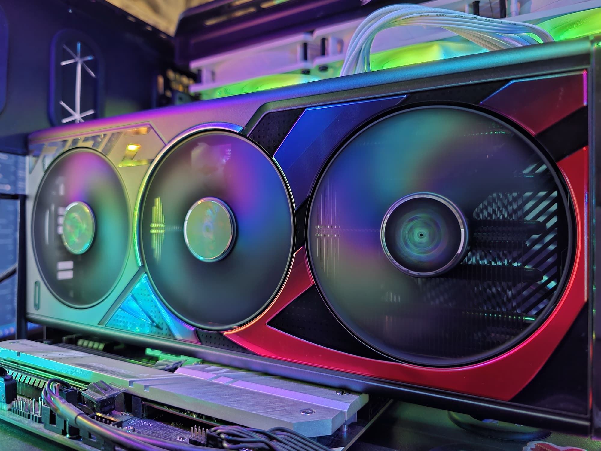 Питание на карту Asus подается через 16-контактный разъем питания стандарта PCIe 5.0 (12VHPWR).