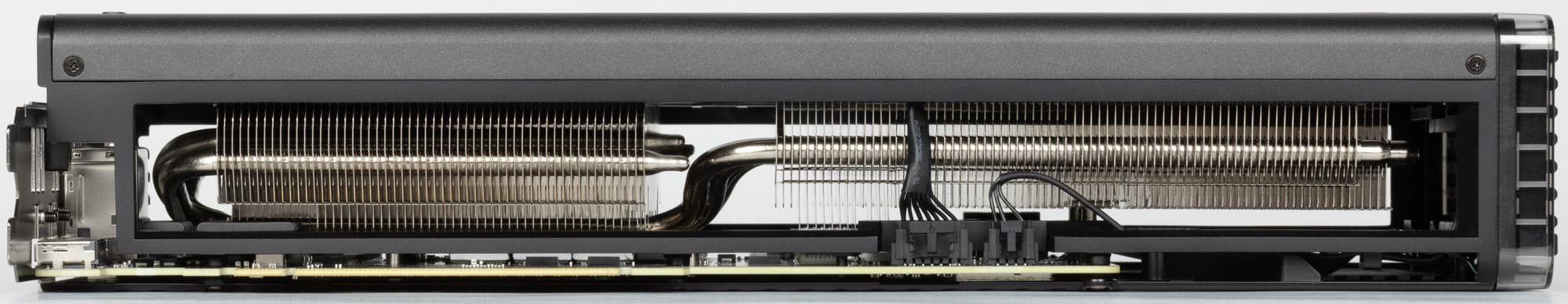 Основой СО является массивный двухсекционный пластинчатый никелированный радиатор с тепловыми трубками, распределяющими тепло по ребрам радиатора. Шесть тепловых трубок припаяны к огромному медному никелированному плато, прижимающегося к GPU.