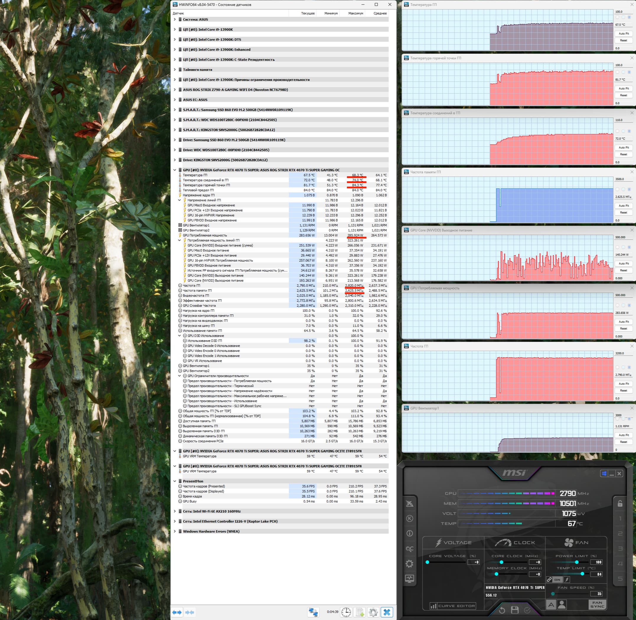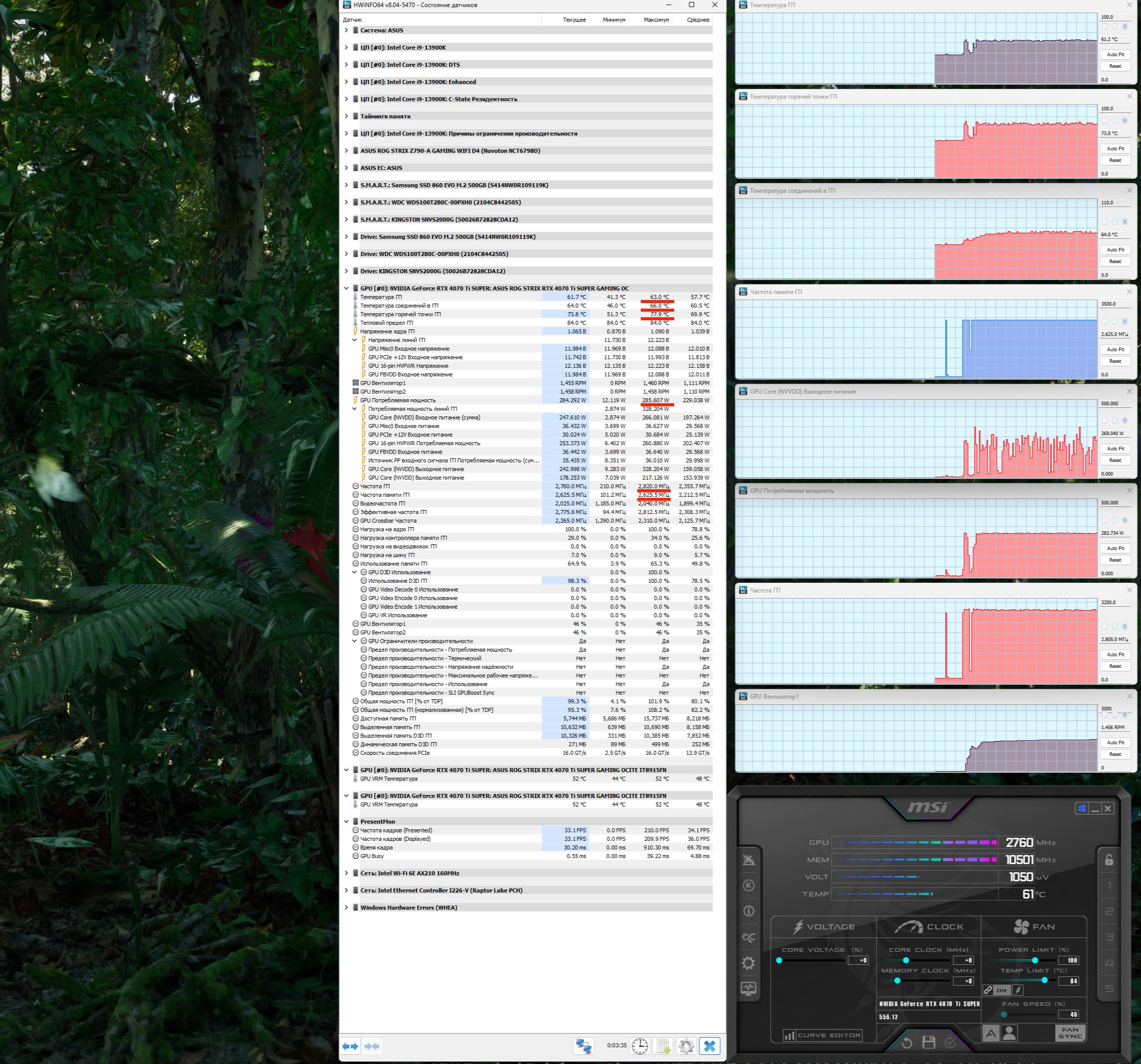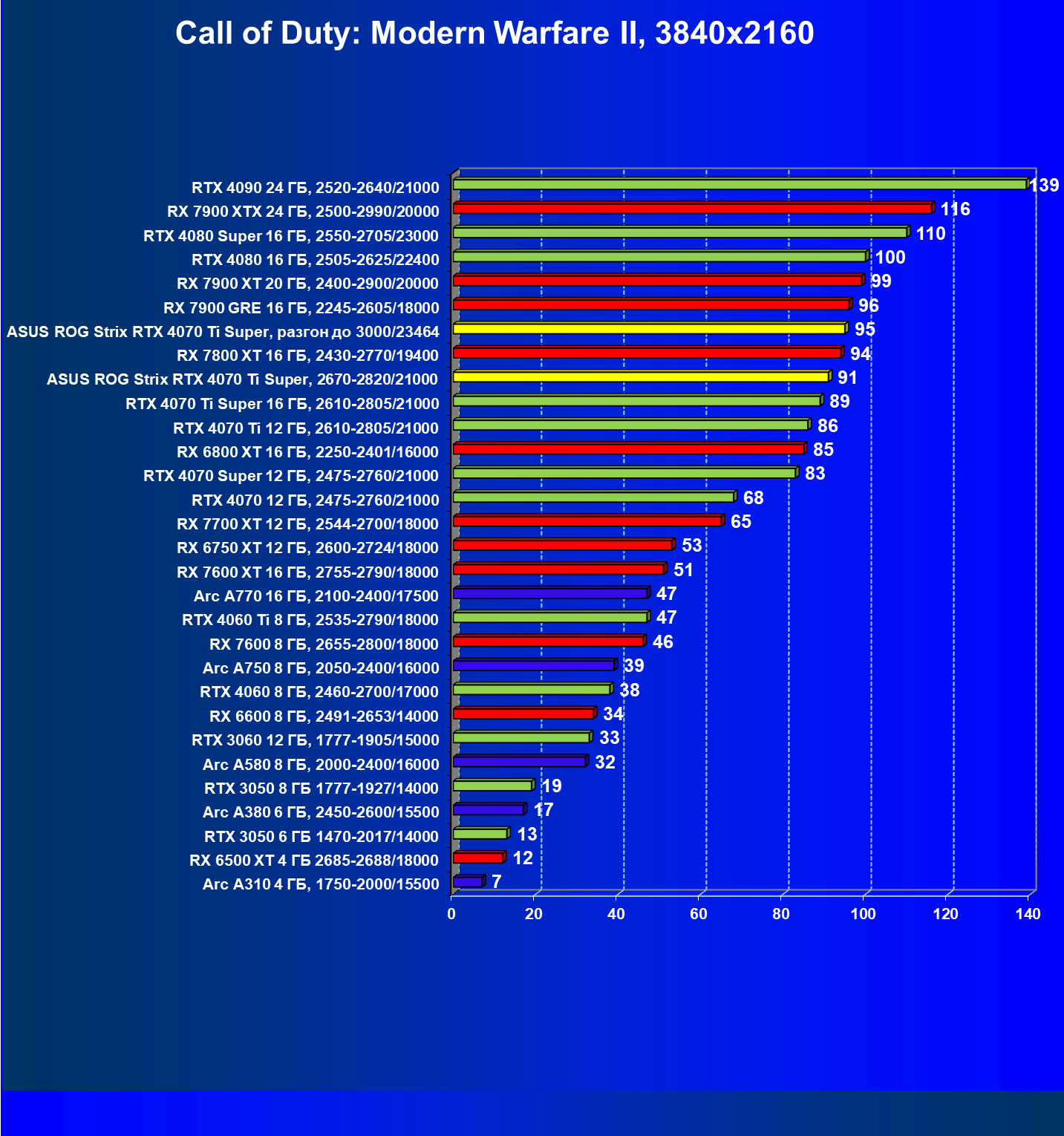 | 06 | Asus ROG Strix RTX 4070 Ti Super, 2670—2820/21000 | 2896 | 263 | 110 000 |