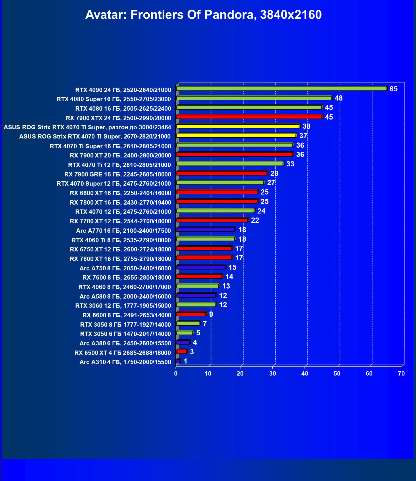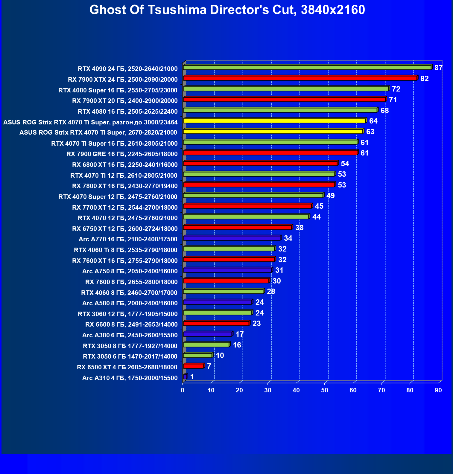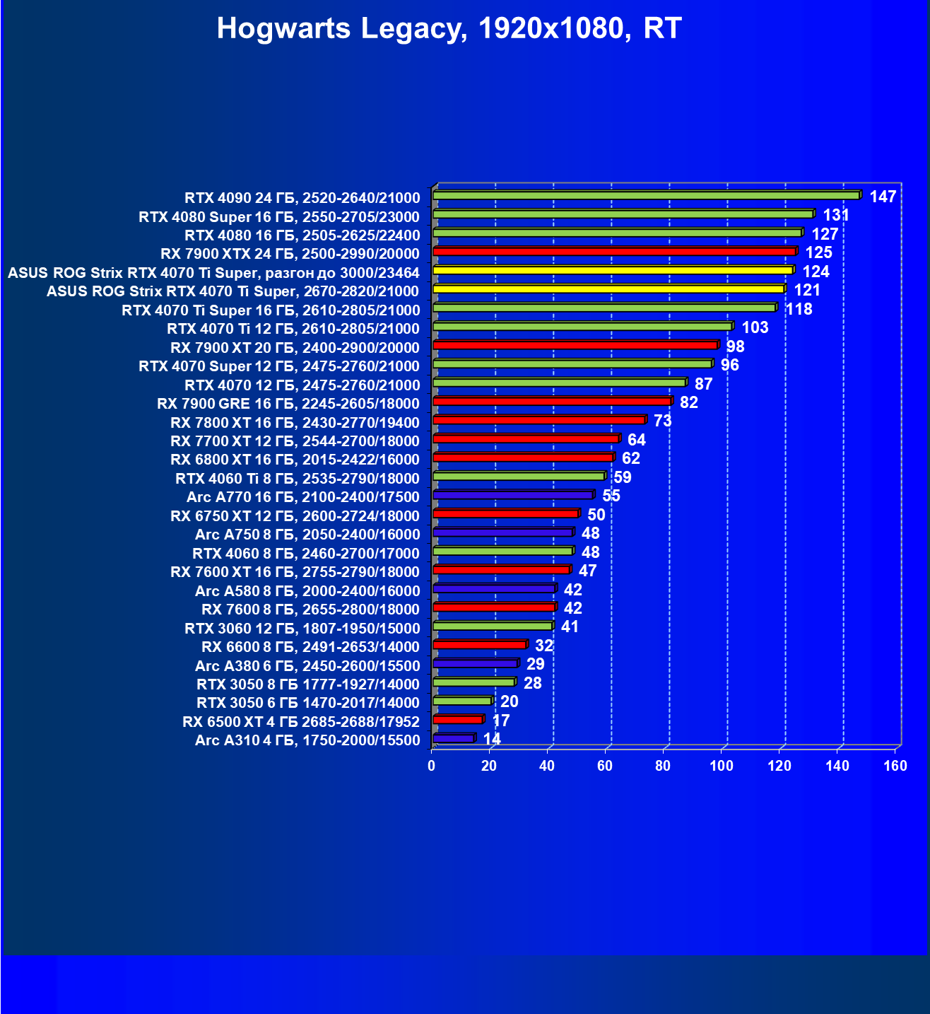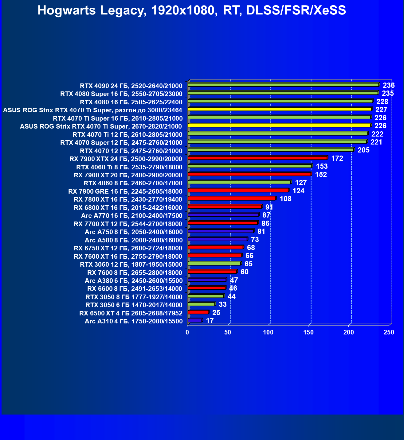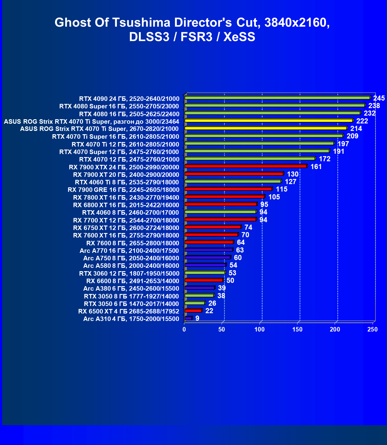 | 23 | Asus ROG Strix RTX 4070 Ti Super, разгон до 3000/23464 | 271 | 2978 | 110 000 |