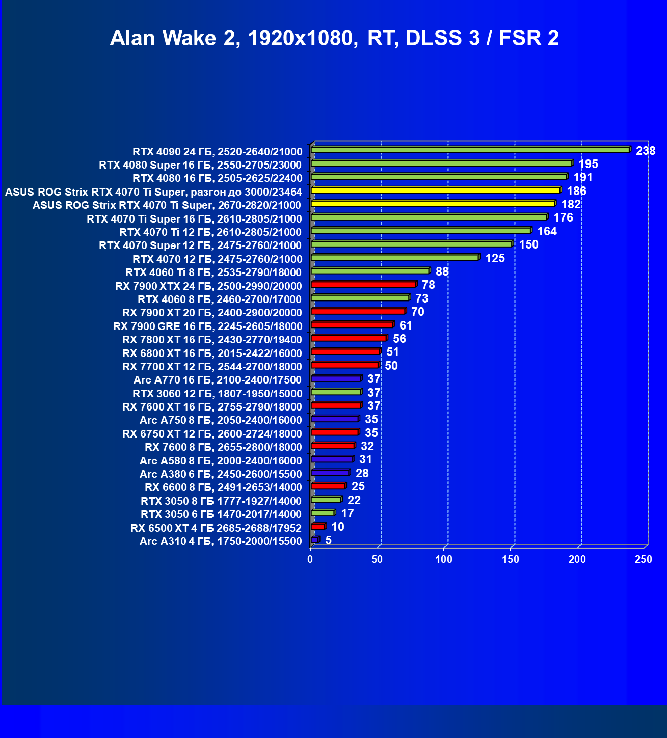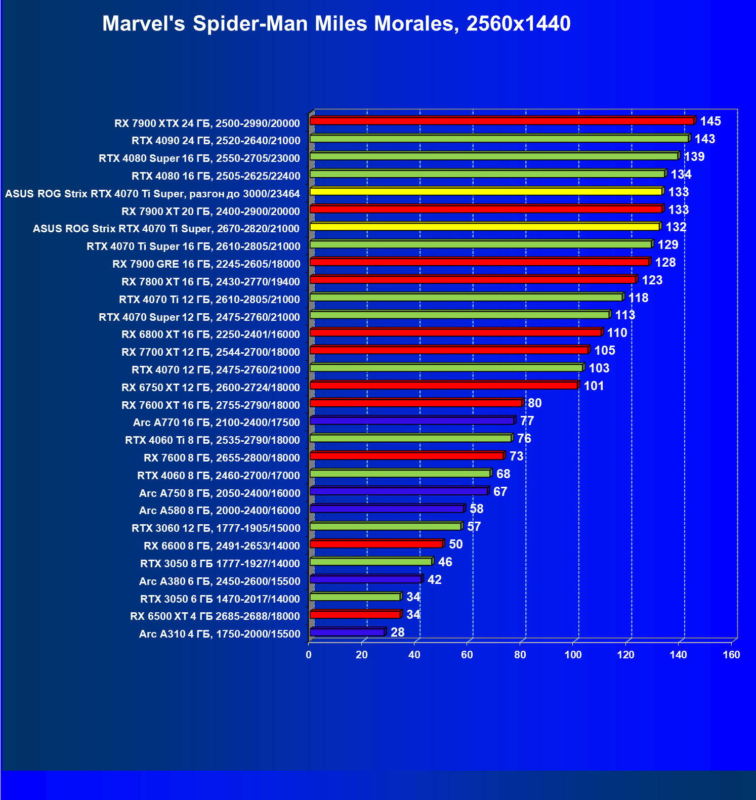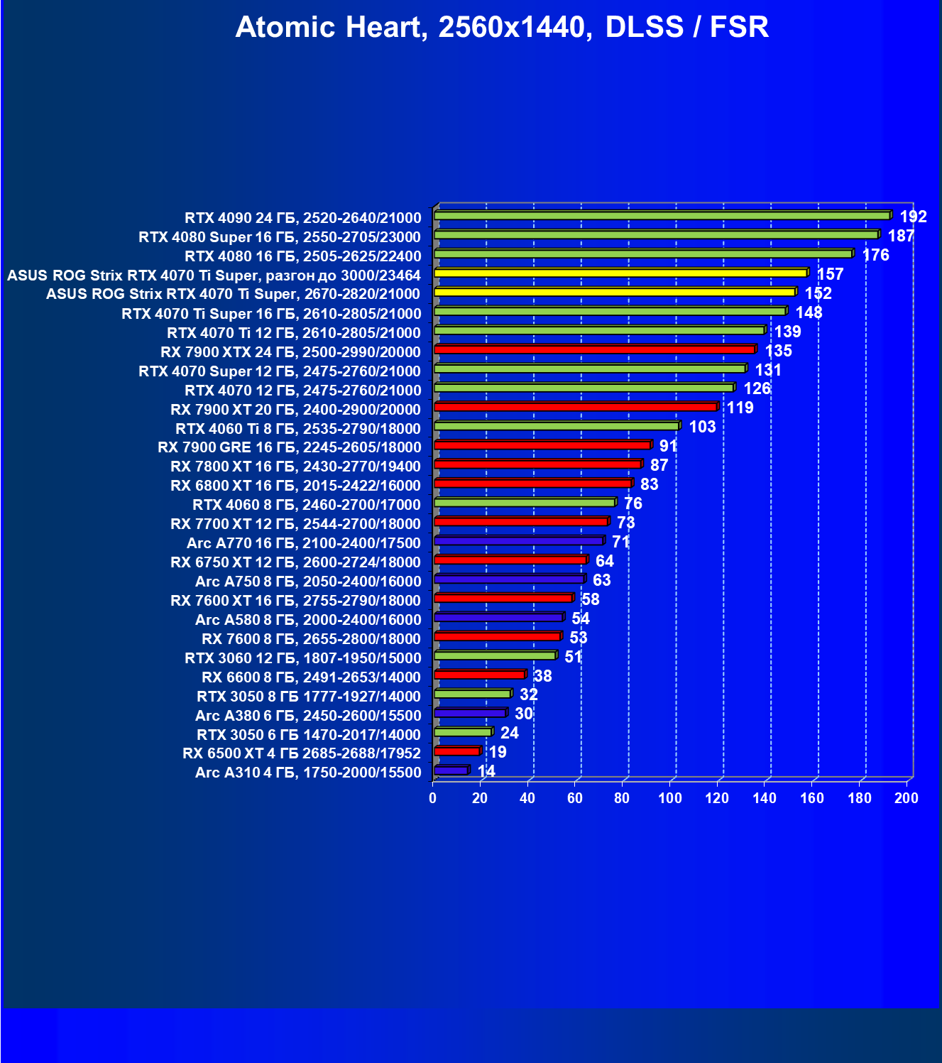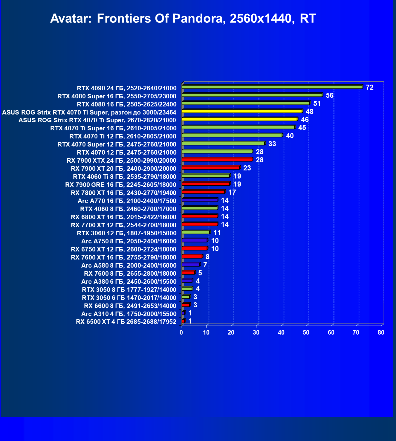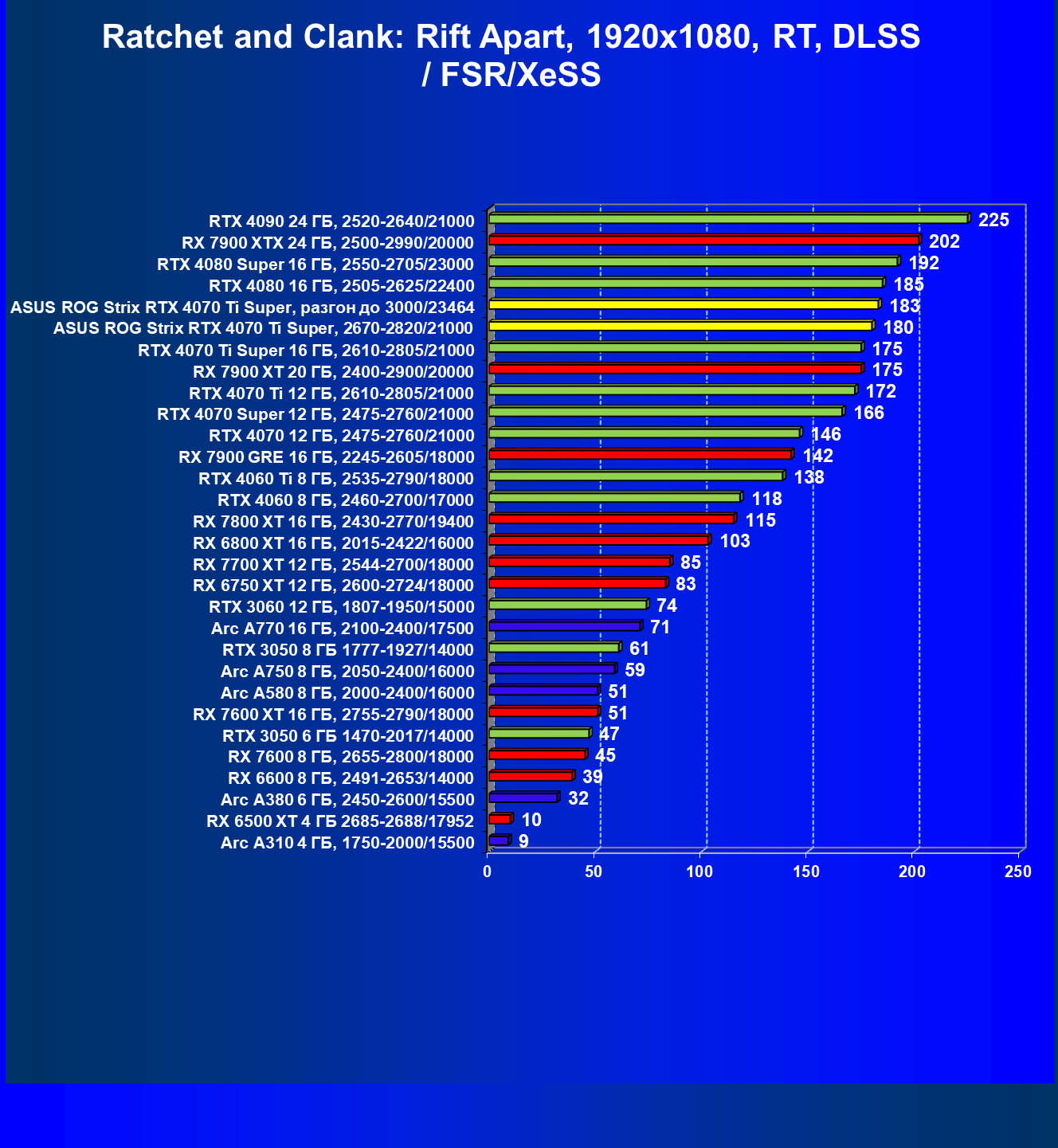 | 23 | Asus ROG Strix RTX 4070 Ti Super, разгон до 3000/23464 | 271 | 2978 | 110 000 |