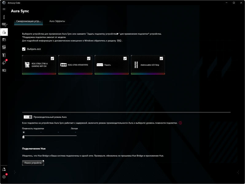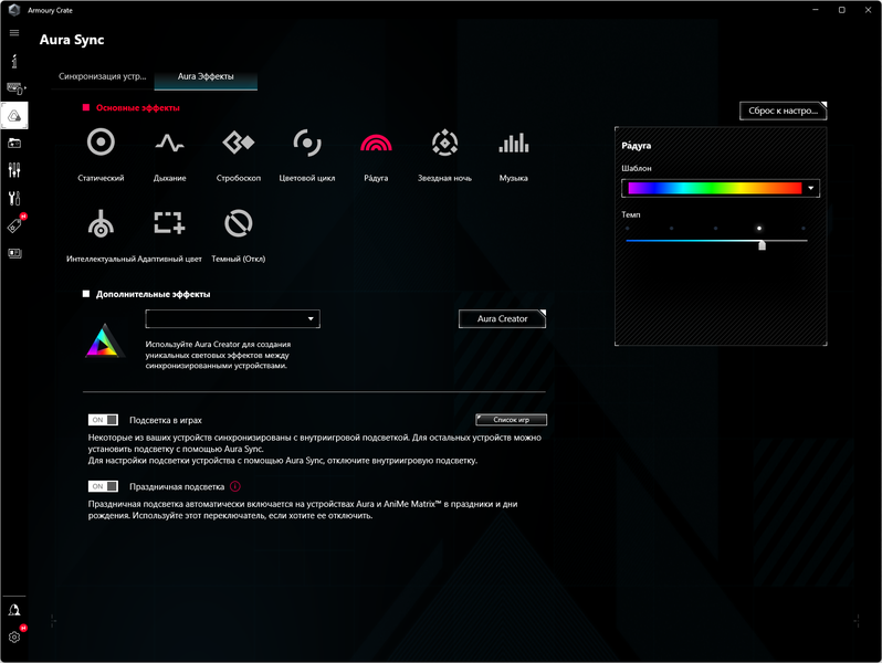 Управление подсветкой традиционно выполнено с помощью фирменной программы Asus — Armoury Crate