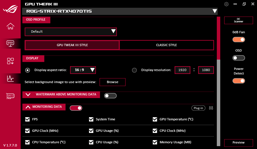 Через фирменную утилиту Asus GPU Tweak III можно управлять работой карты.