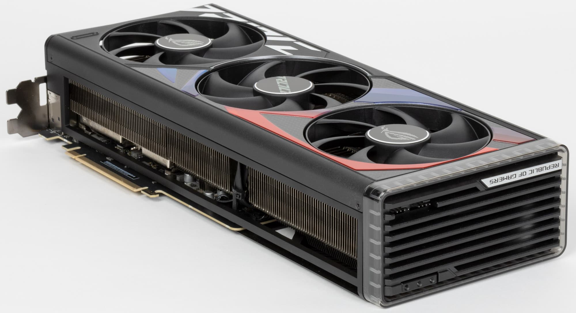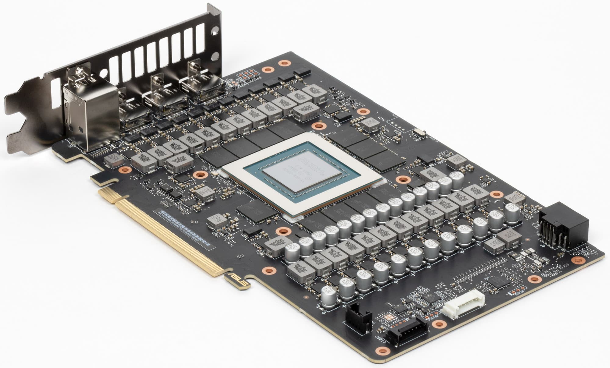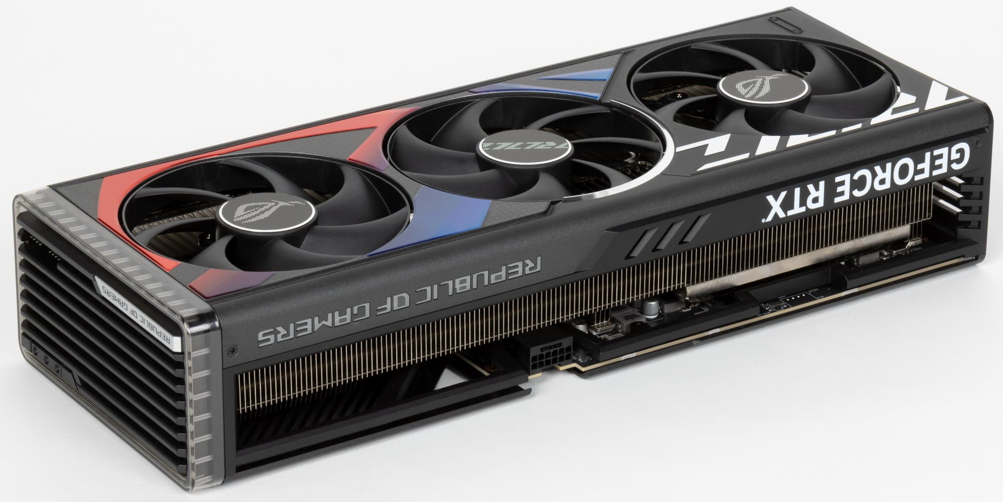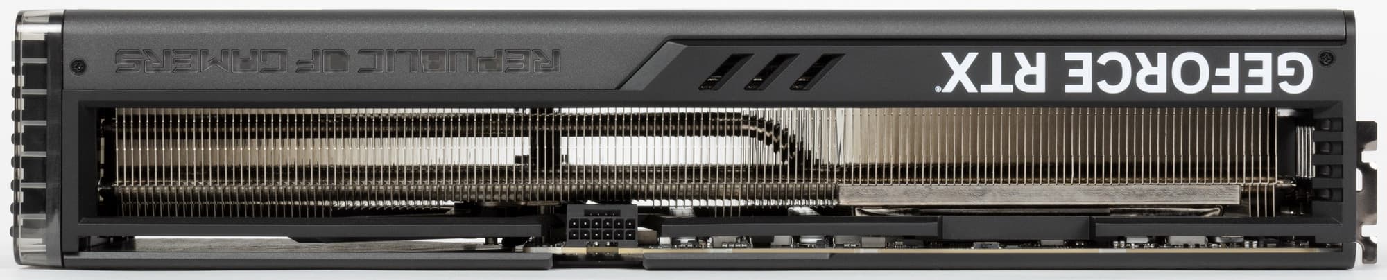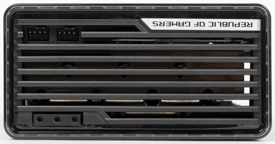 Как и у всей серии видеокарт ROG, у этой платы в хвостовой части имеются два коннектора