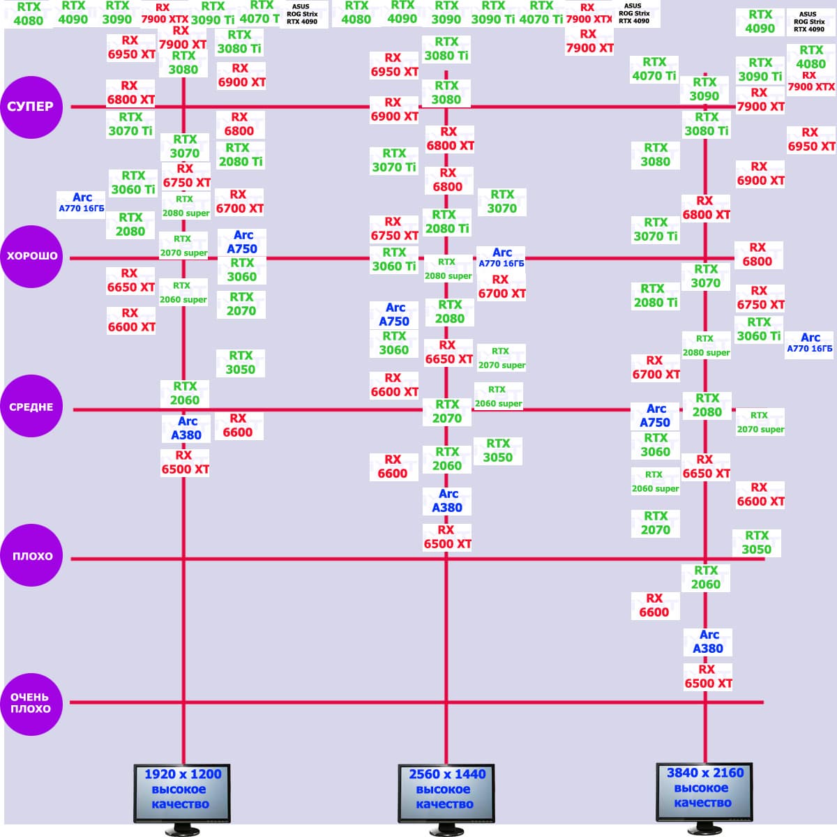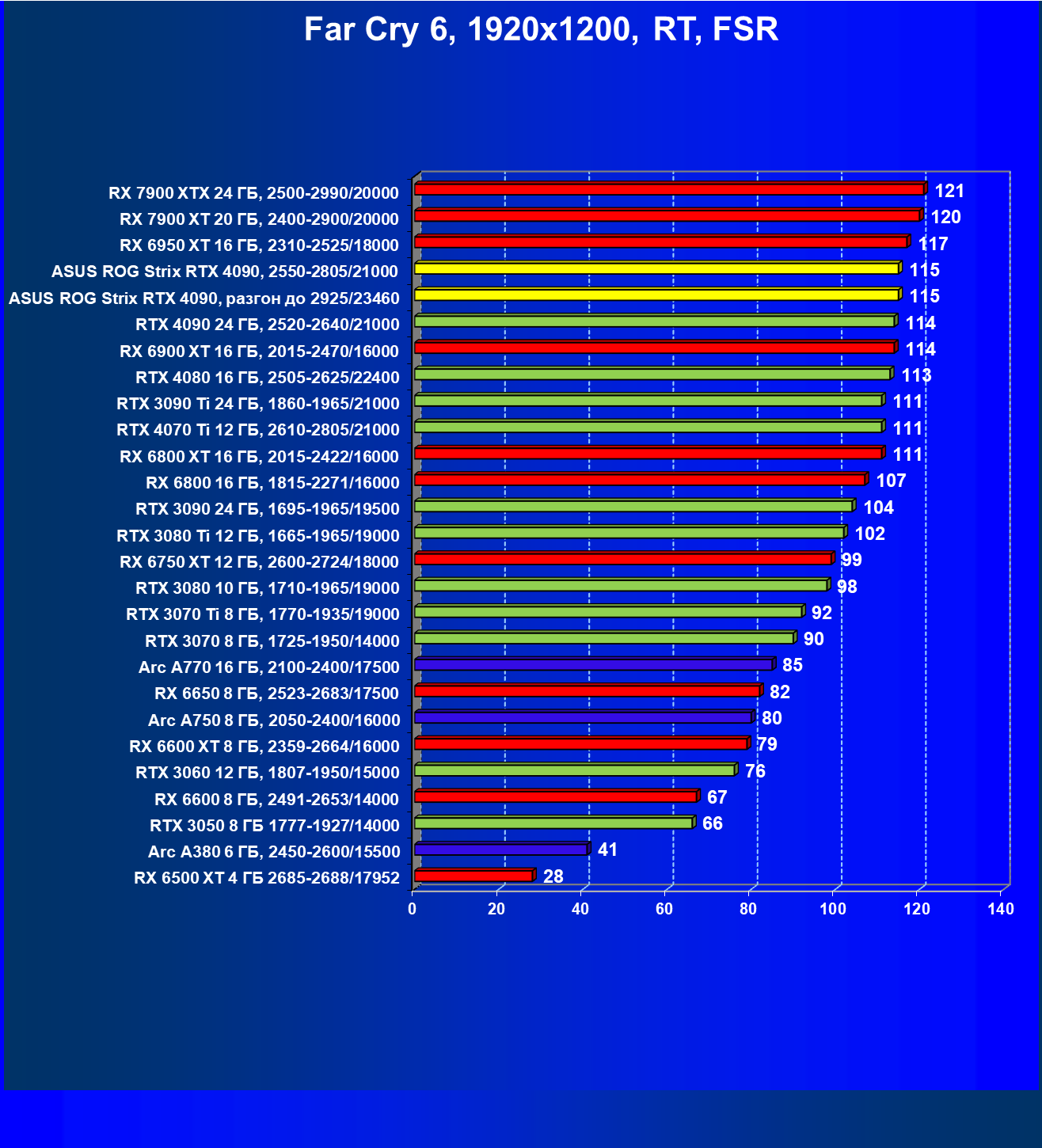 | 17 | RX 7900 XTX 24 ГБ, 2500—2990/20000 | 121 | 1280 | 106 000 |