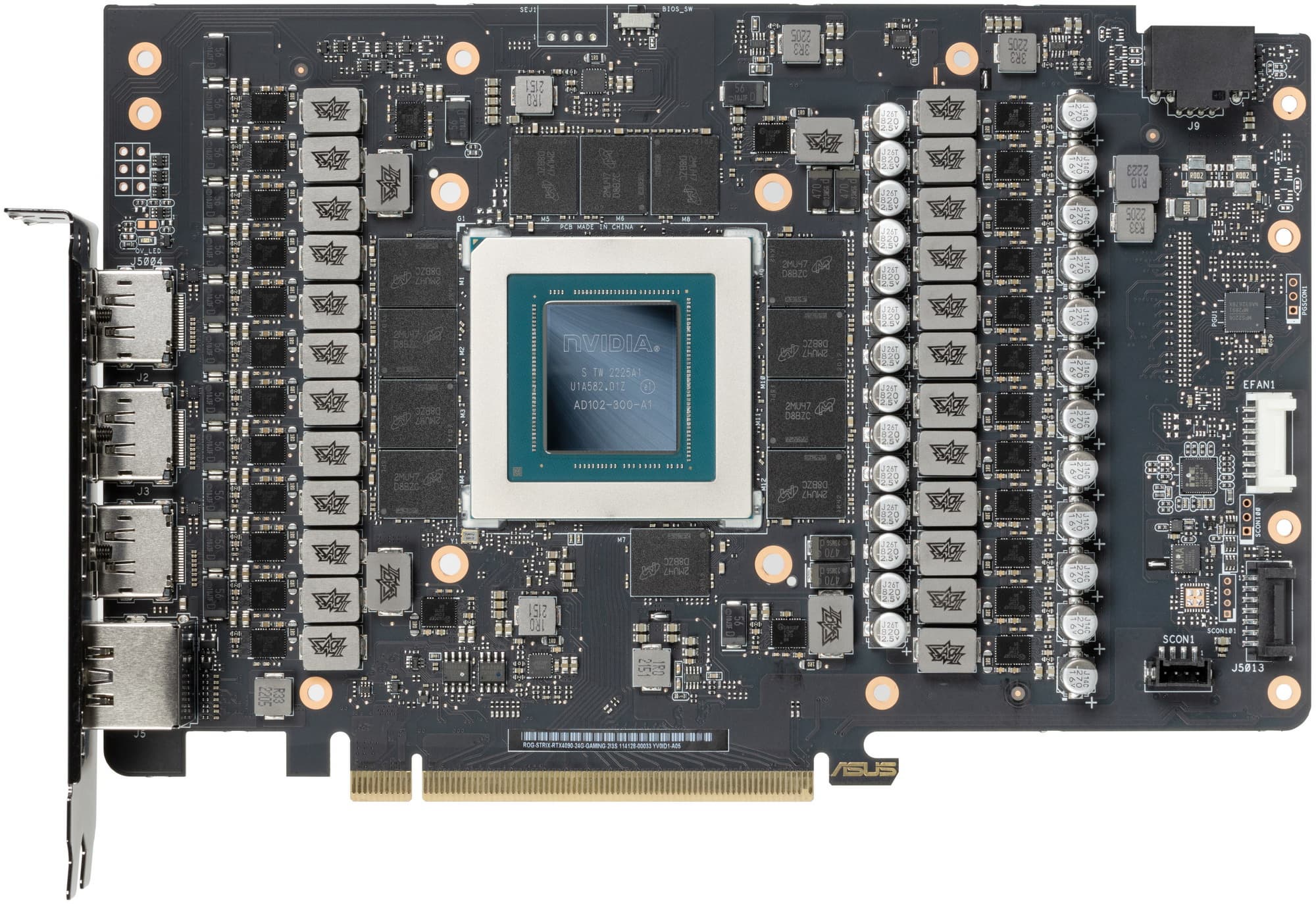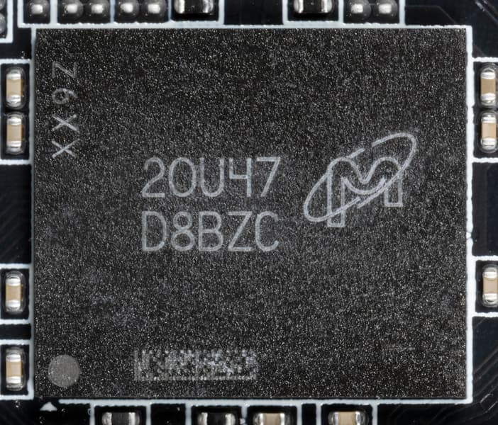 Карта имеет 24 ГБ памяти GDDR6X SDRAM, размещенной в 12 микросхемах по 16 Гбит на лицевой стороне PCB. Микросхемы памяти Micron (GDDR6X, MT61K512M32KPA-21 / D8BZC) рассчитаны на номинальную частоту работы в 2625 (21000) МГц.