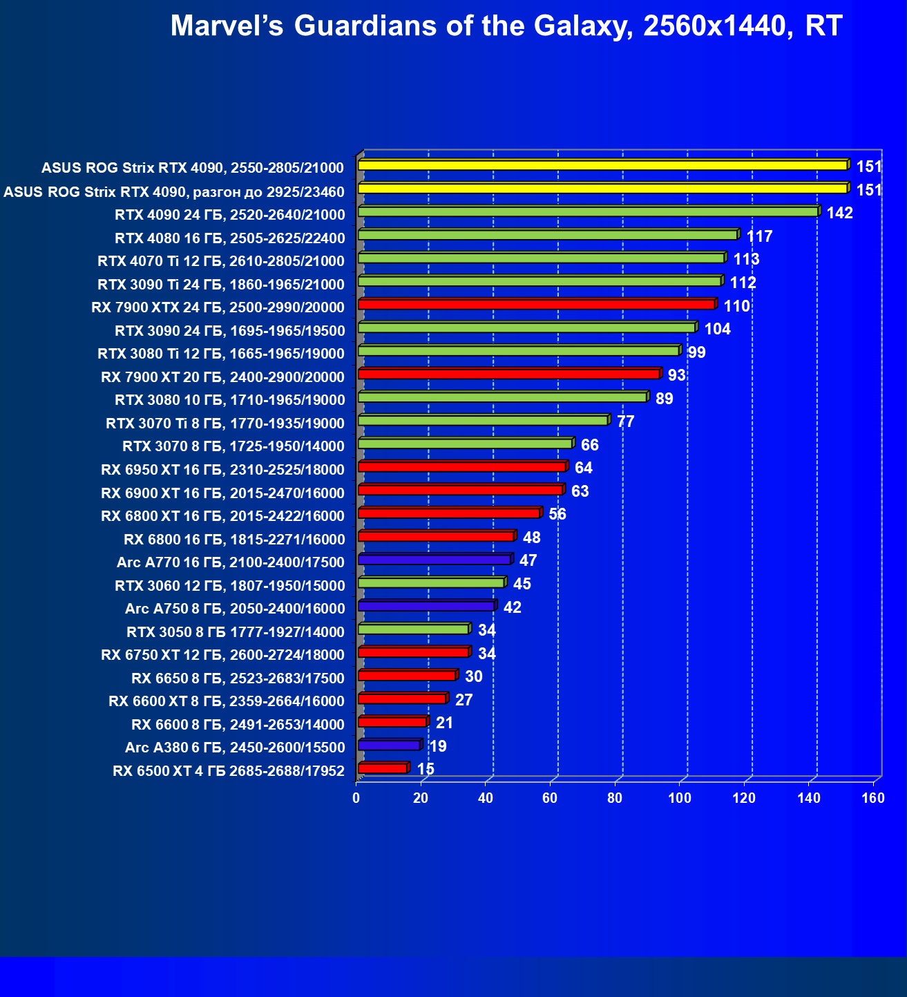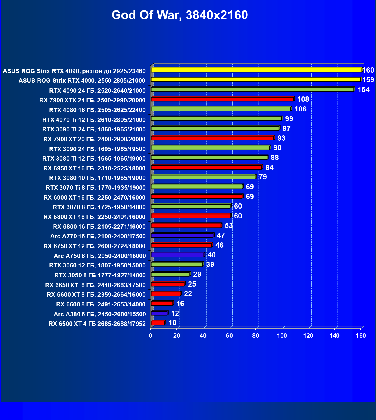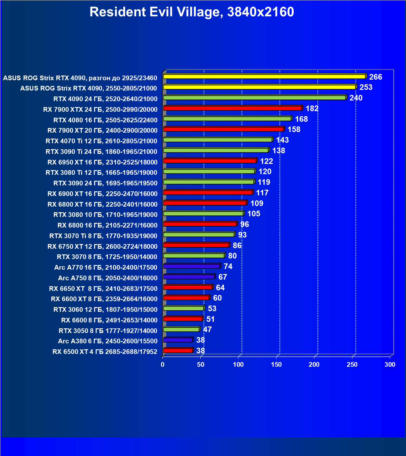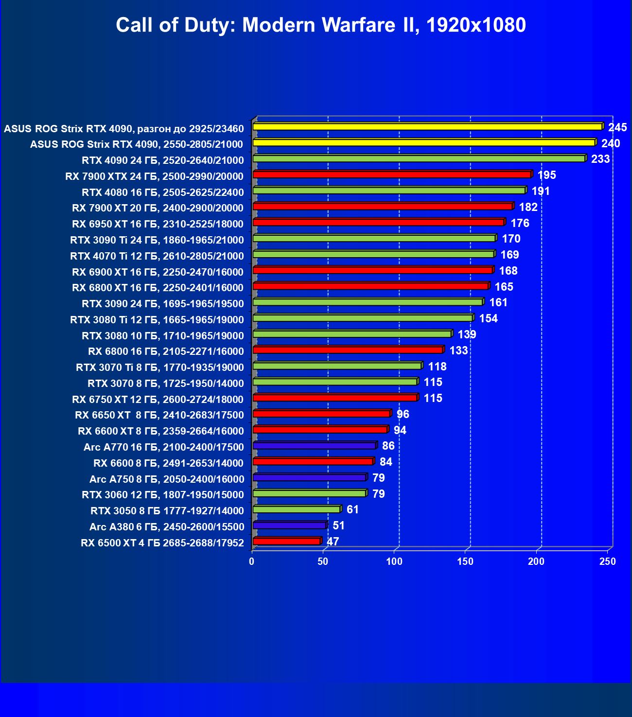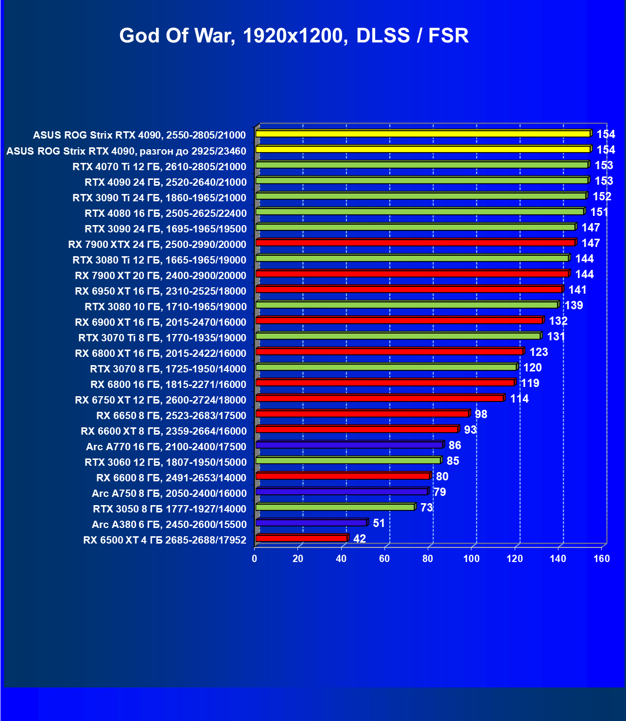 | 25 | Asus ROG Strix RTX 4090, разгон до 2925/23460 | 94 | 1878 | 200 000 |