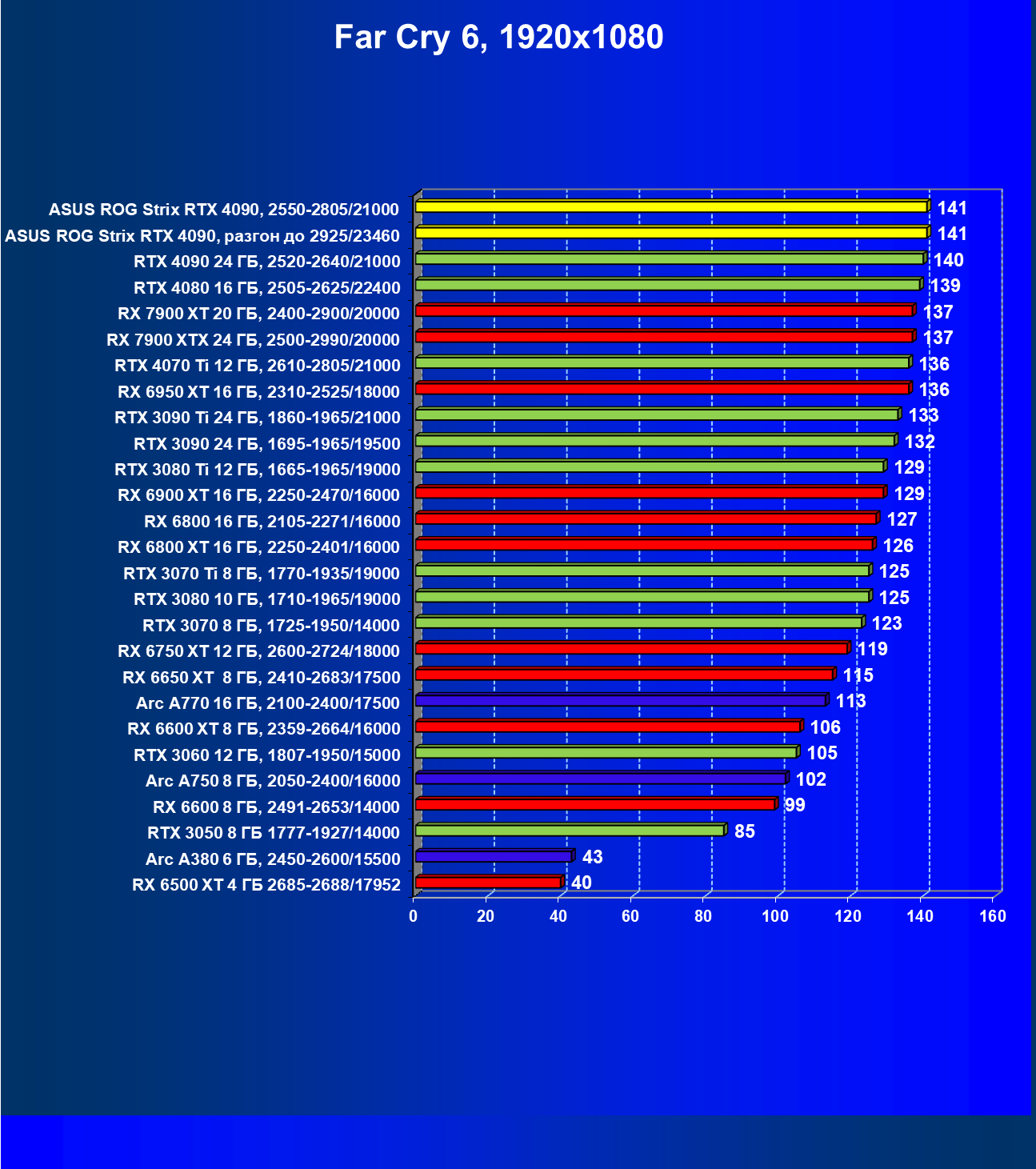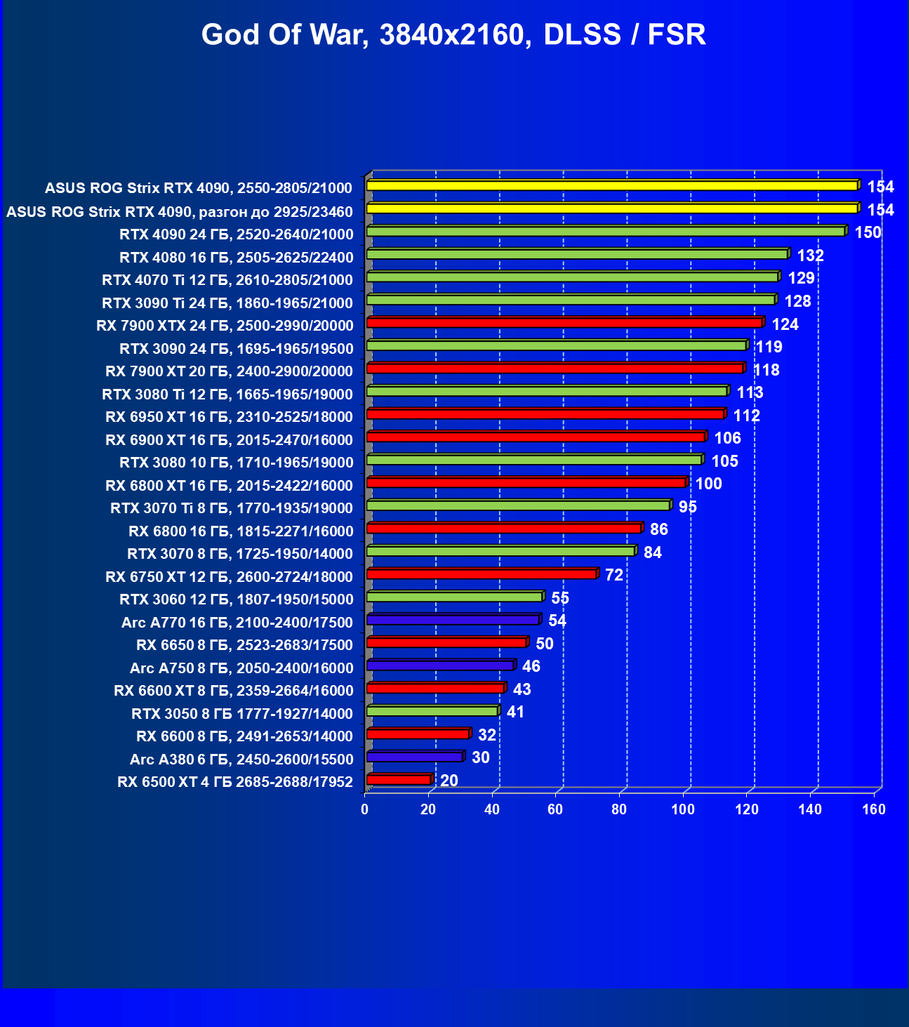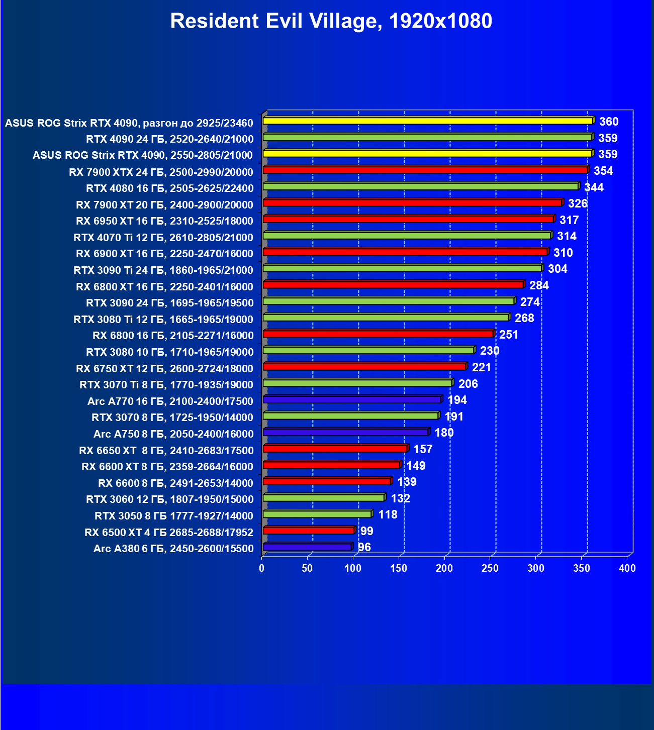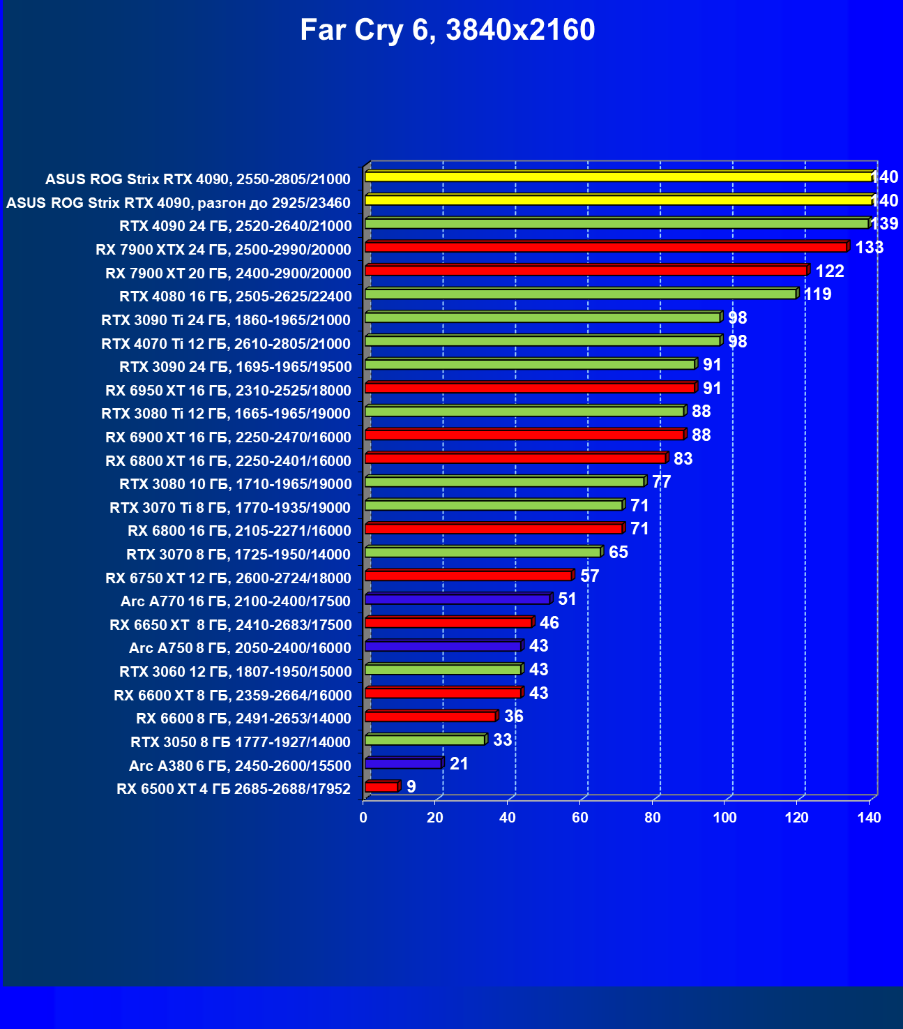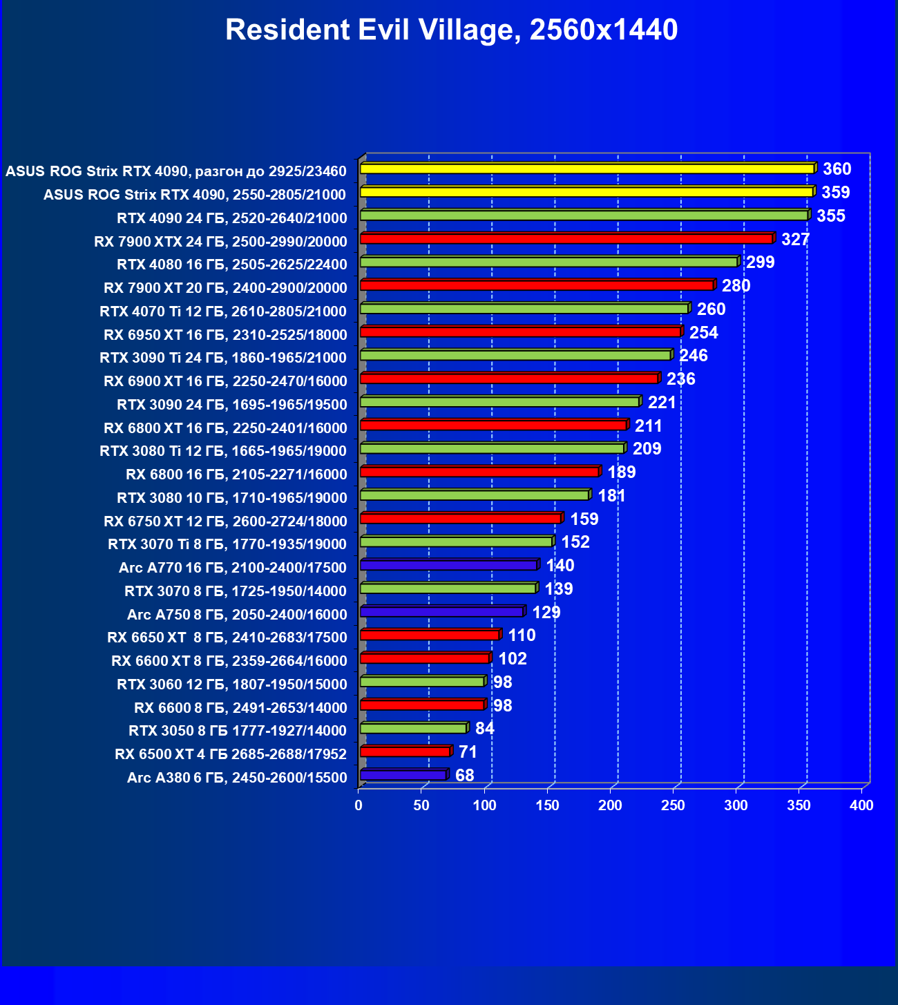| 25 | Asus ROG Strix RTX 4090, разгон до 2925/23460 | 94 | 1878 | 200 000 |