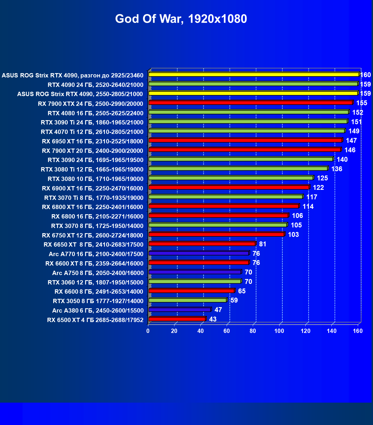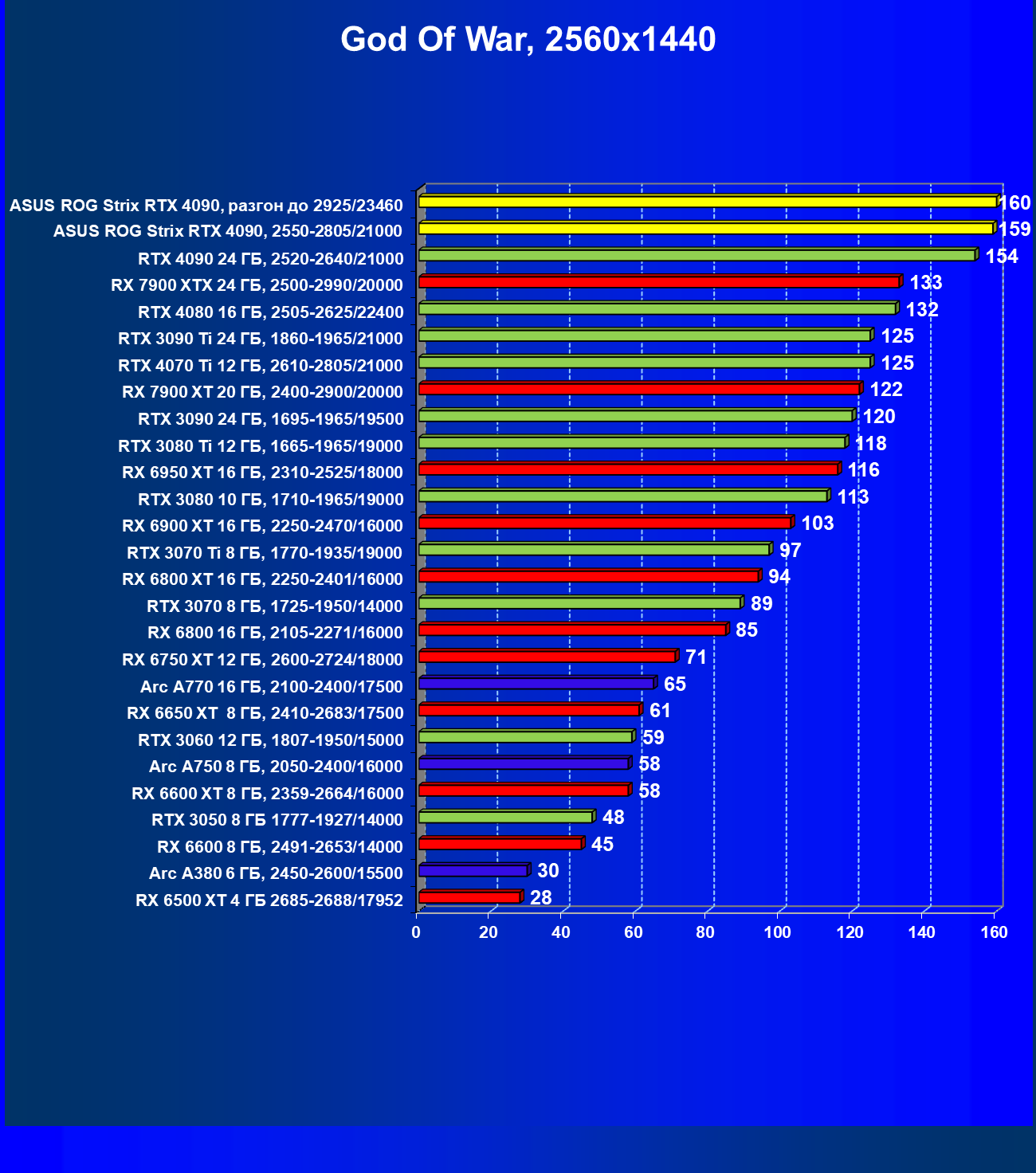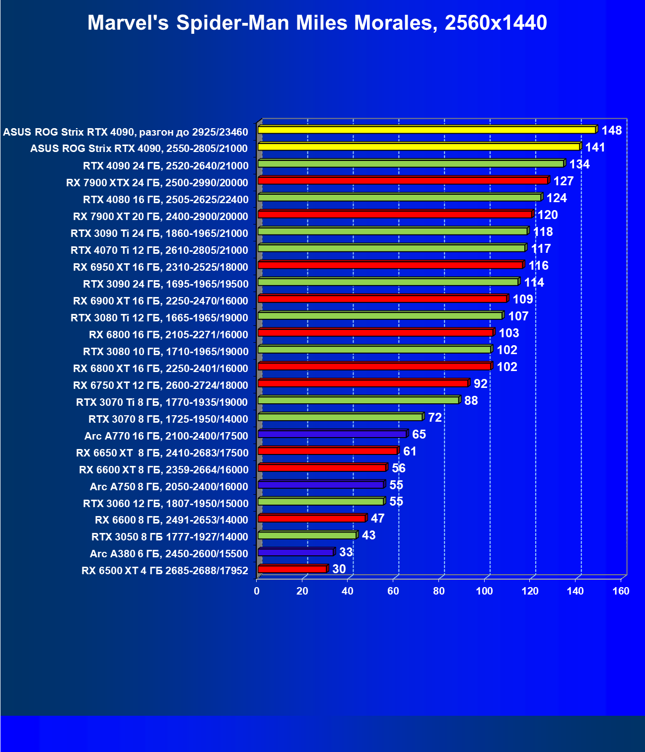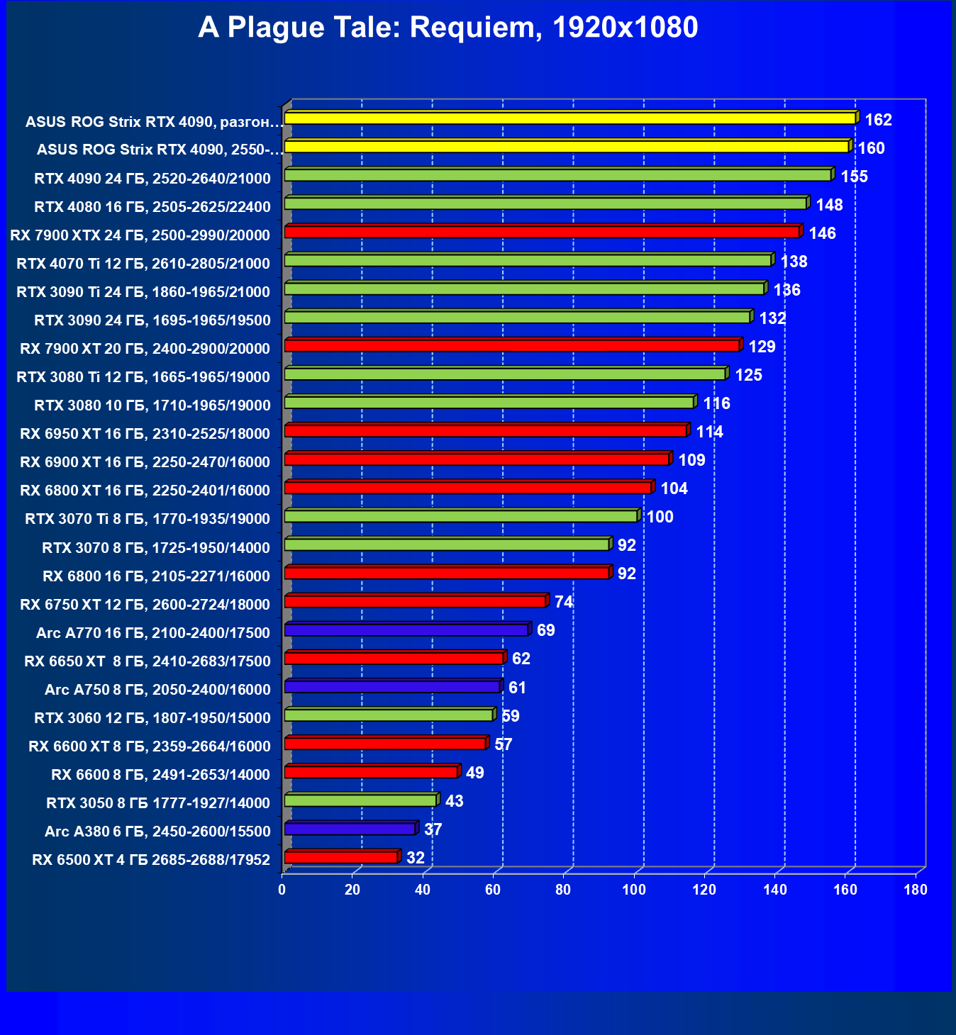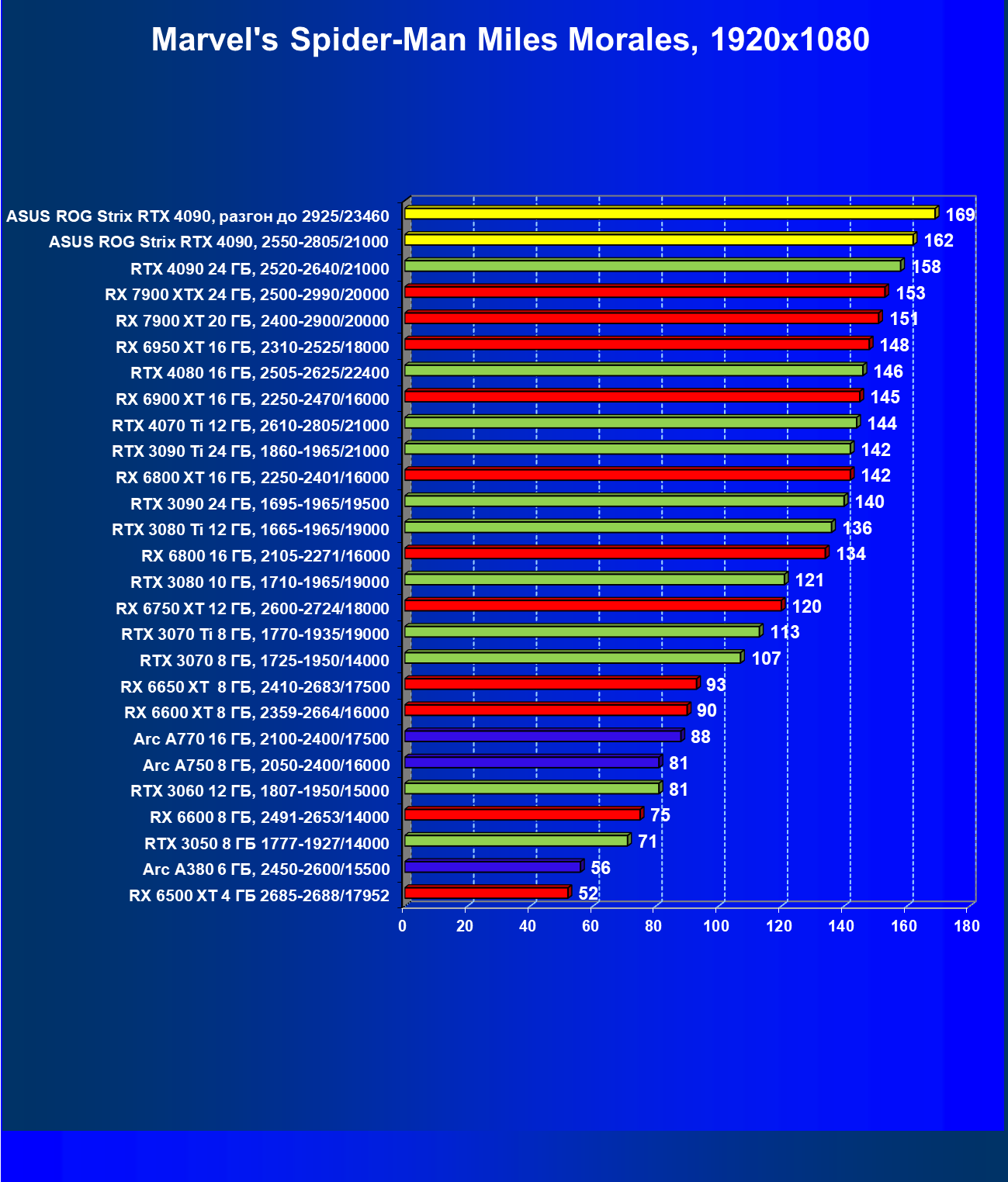 | 25 | Asus ROG Strix RTX 4090, разгон до 2925/23460 | 94 | 1878 | 200 000 |
