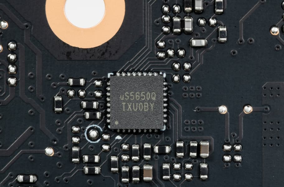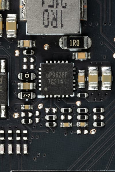 Продолжаем. На тыльной стороне карты имеется контроллер uS5650Q (uPI Semi), который отвечает за мониторинг карты (отслеживание напряжений и температуры).