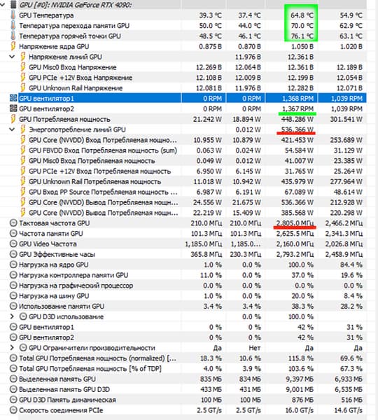 | 02 | Asus ROG Strix RTX 4090, 2550—2805/21000 | 618 | 31 | 200 000 |