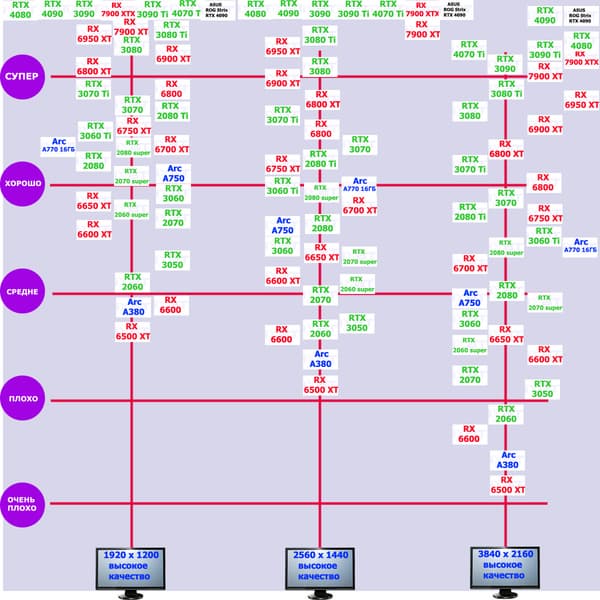 В вышеуказанном разрешении смогут себе позволить поиграть владельцы RTX 4090/4080/4070 Ti/3090 Ti/3090/, а также RX 7900 XTX/7900 XT/6950/6900 XT, да и то для приемлемого комфорта в таких играх требуется обязательная поддержка DLSS (или FSR). Однако поиграть все же можно.