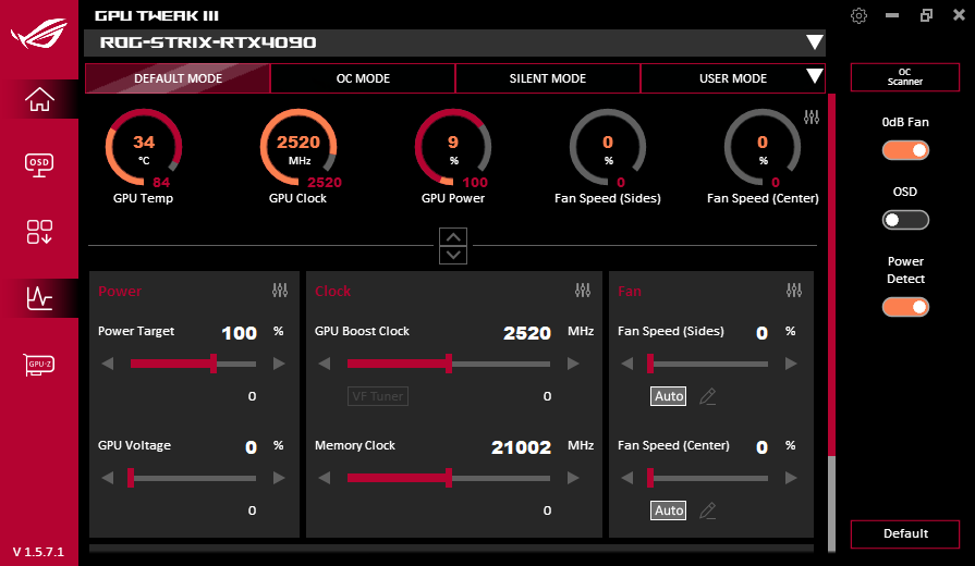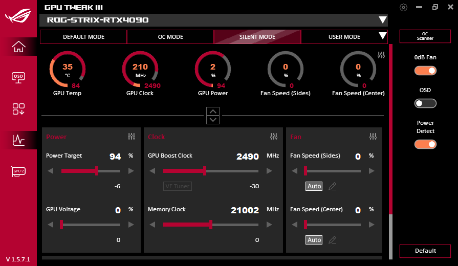 Через фирменную утилиту Asus GPU Tweak III можно управлять работой карты.
