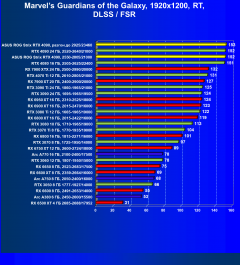 Результаты тестов со включенной аппаратной трассировкой лучей и/или DLSS/FSR в разрешениях 1920×1200, 2560×1440 и 3840×2160