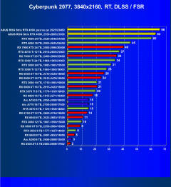 Ситуация у RTX 4090 примерно та же. Безусловно, включение RT снижает производительность, однако реализованные уже практически во всех играх с трассировкой лучей технологии Nvidia DLSS и AMD FSR сильно помогают нивелировать падение скорости от использования RT. Конечно же, в первую очередь от них выигрывают новые флагманы.