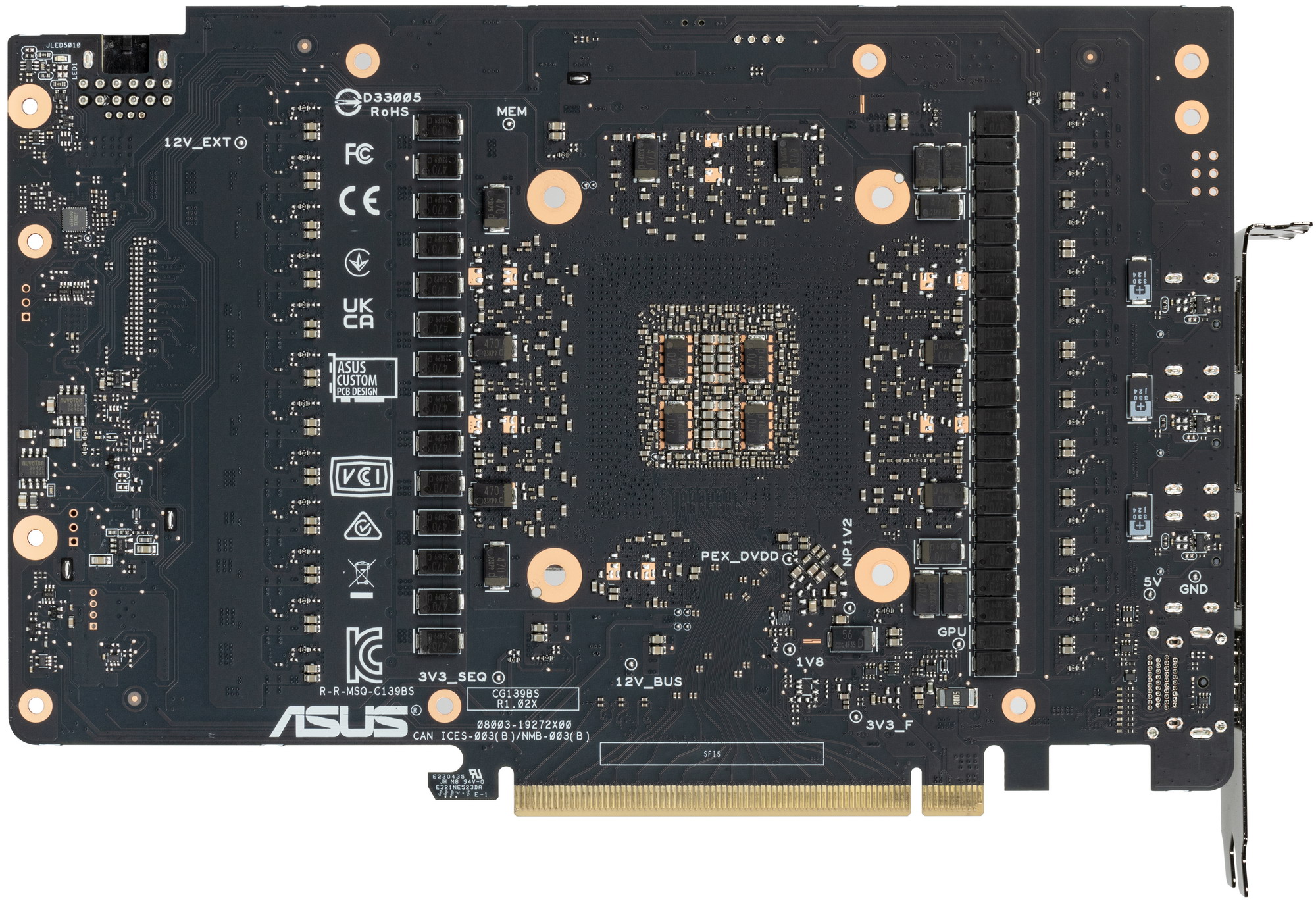 Питание на карту Asus подается через новый 16-контактный разъем питания стандарта PCIe 5.0 (12VHPWR).