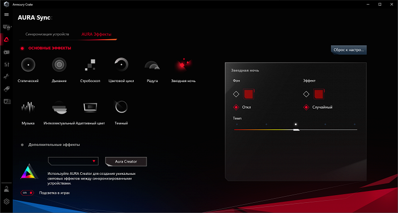 Выбор режимов не очень широк, однако имеется программа Aura Creator, которая также распространяется бесплатно, и с ее помощью можно создать собственные сценарии подсветки/