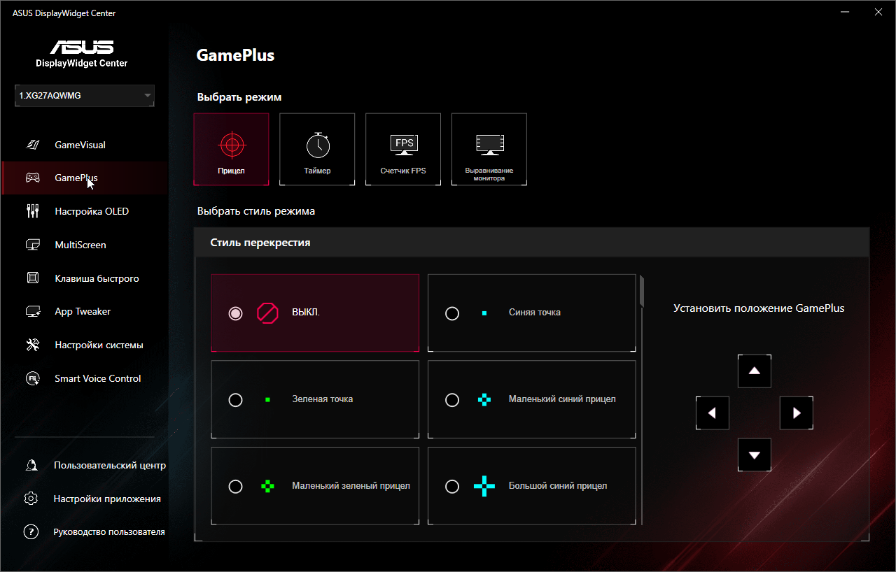 Из дополнительных возможностей в наборе GamePlus присутствуют пять «геймерских» функции: вывод на экране счетчика частоты кадров (с графиком или без), прицела выбранной формы и цвета (есть вариант с автоматическим выбором цвета, чтобы прицел всегда был виден), небольшой области с увеличением для лучшего прицеливания, таймера с обратным отсчетом от фиксированных значений, секундомера и меток для выравнивания установленных встык мониторов. Выводиться может что-то одно.