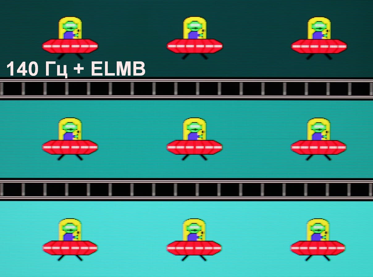 Четкость изображения высокая, при этом четкость в случае 140 Гц с ELMB такая же, что и в случае 280 Гц, но во втором случае нет никакого мерцания экрана. В итоге польза от ELMB сомнительная.