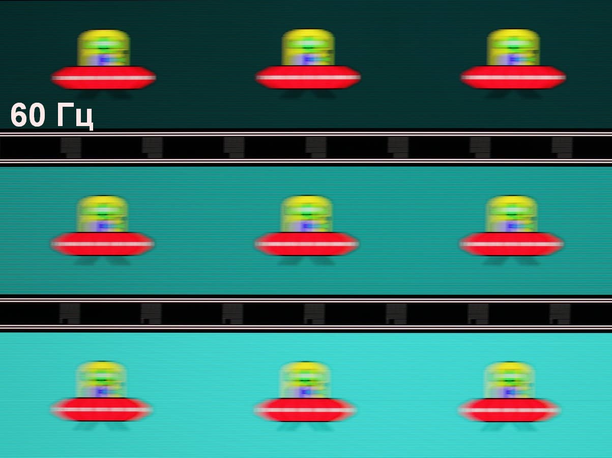 Однако из-за мерцания с частотой 140 Гц данный режим рекомендуется использовать с осторожностью, так как мерцание может приводить к повышенной утомляемости глаз. Также отметим, что включение этого режима приводит к снижению максимальной яркости изображения в 2 раза (относительно режима SDR при выключенной опции Равномерная яркость).