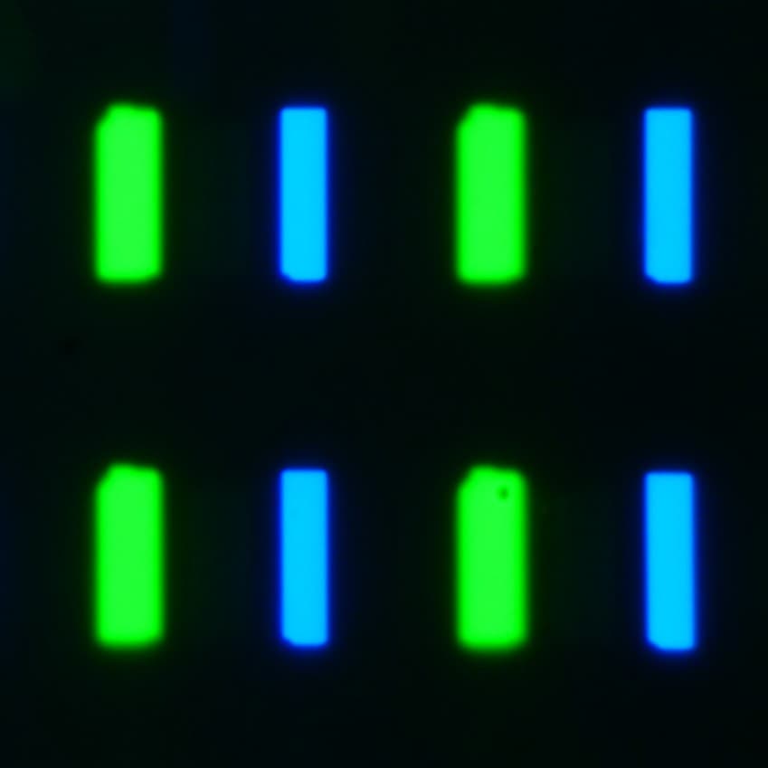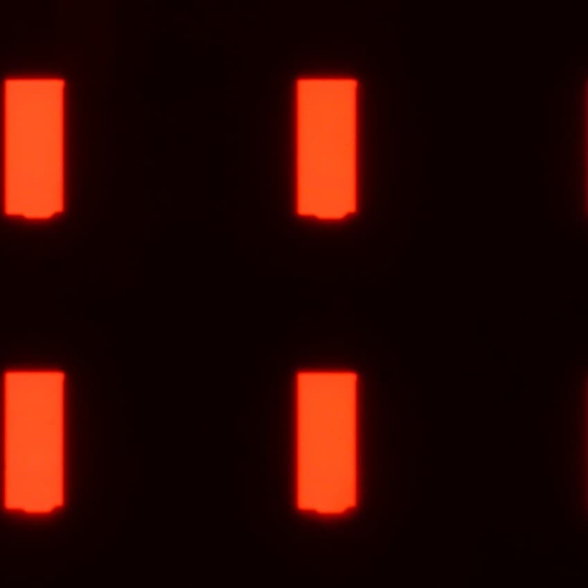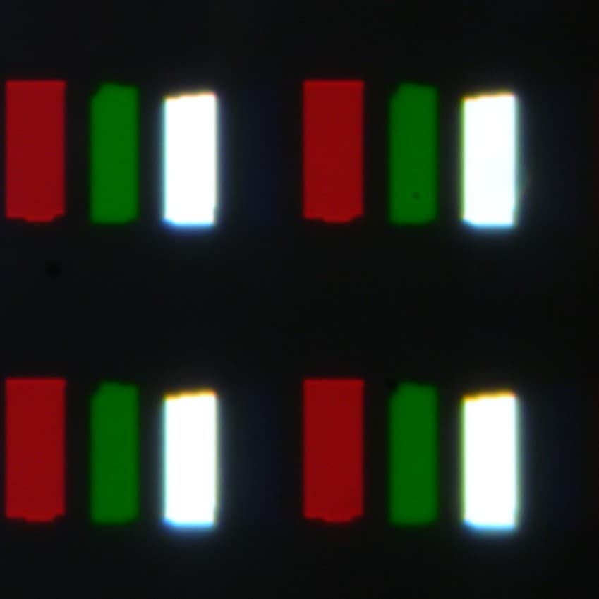 Видно, что светофильтры нанесены вертикальными полосками, как и в случае типичной ЖК-матрицы. Иное расположение субпикселей в четвертом поколении матриц дает свои плоды — мелкий текст читается гораздо лучше, чем в случае матриц WOLED предыдущего поколения, но все равно чуть хуже, чем в случае типичных ЖК-матриц.