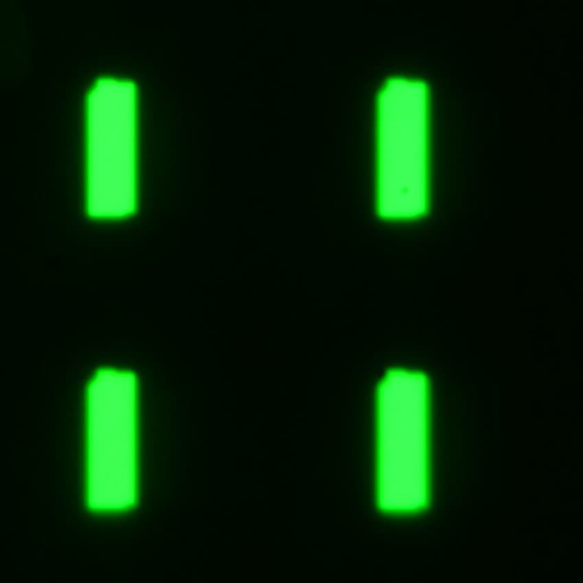 На любом уровне яркости видимое мерцание отсутствует, его не выявляет и тест на стробоскопический эффект. Регистрация зависимости яркости от времени при различных уровнях яркости выявила модуляцию яркости с очень высоким коэффициентом заполнения, что и объясняет отсутствие мерцания. В доказательство приведем графики зависимости яркости (вертикальная ось) от времени (горизонтальная ось) при различных значениях настройки Яркость в случае белого поля на 10% от площади экрана.