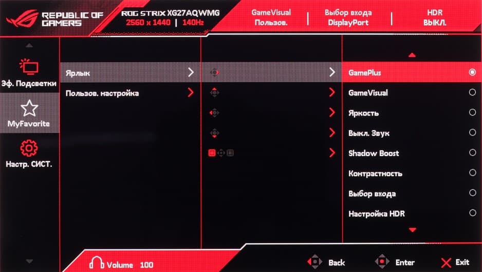 Присутствует набор предустановленных, но редактируемых значений настроек в виде нескольких профилей в том числе игровых.