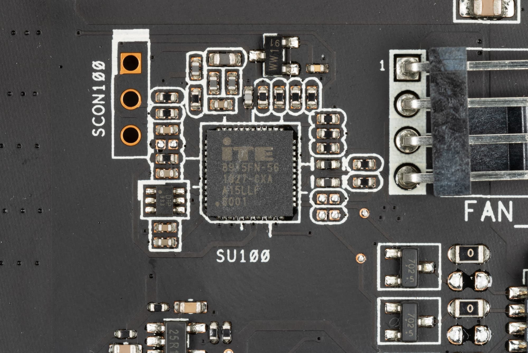 На снимке выше хорошо виден дополнительный разъем для подключения корпусного вентилятора, чтобы заставить его работать в соответствии с нагревом GPU карты (технология Fan Connect II). Всем этим также управляет вышеуказанный контроллер ITE.