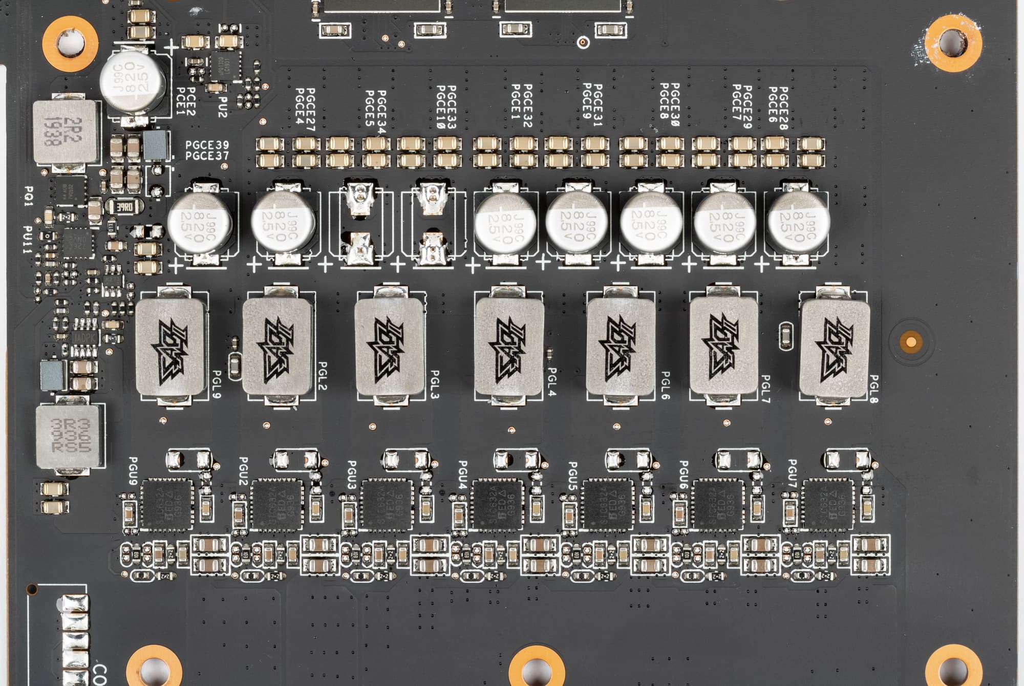 Итак, схема питания ядра у карты Asus — 7-фазная.