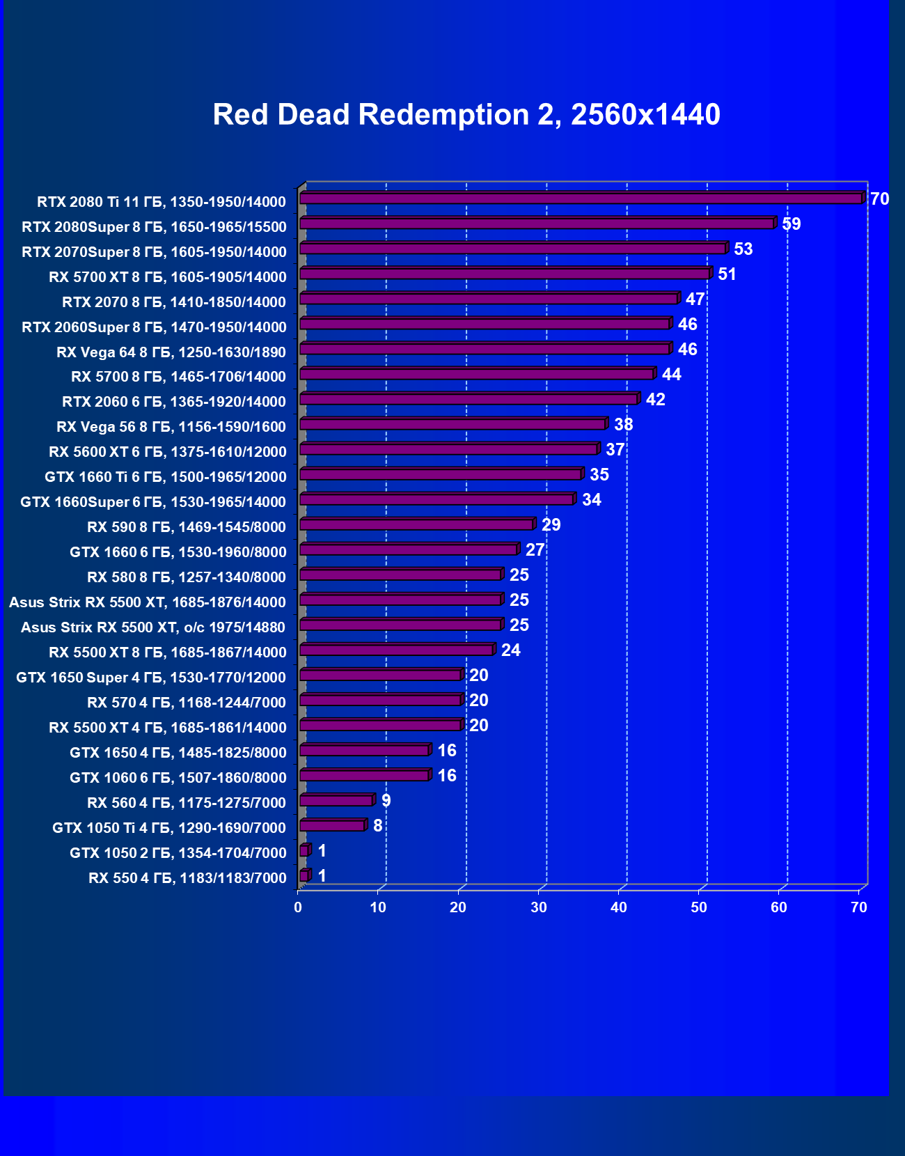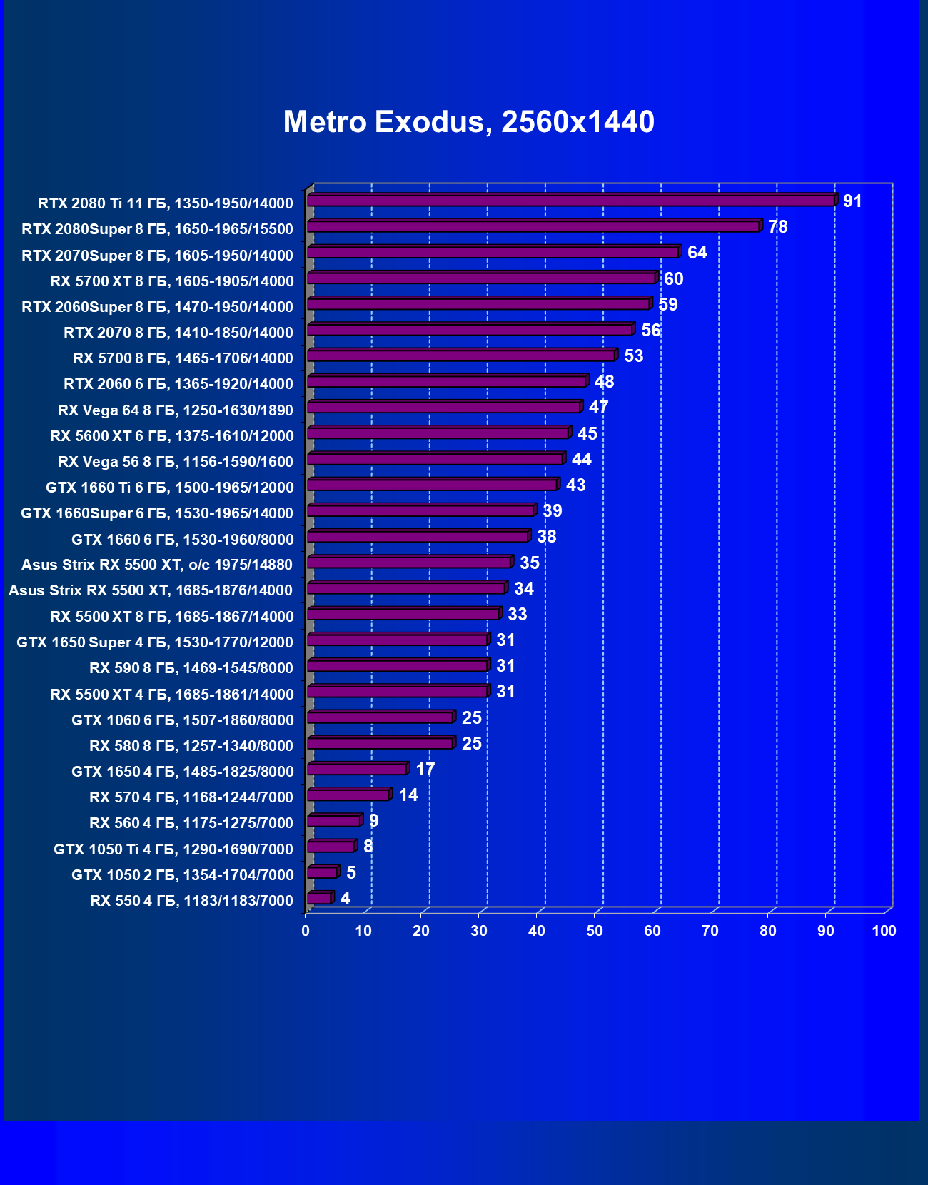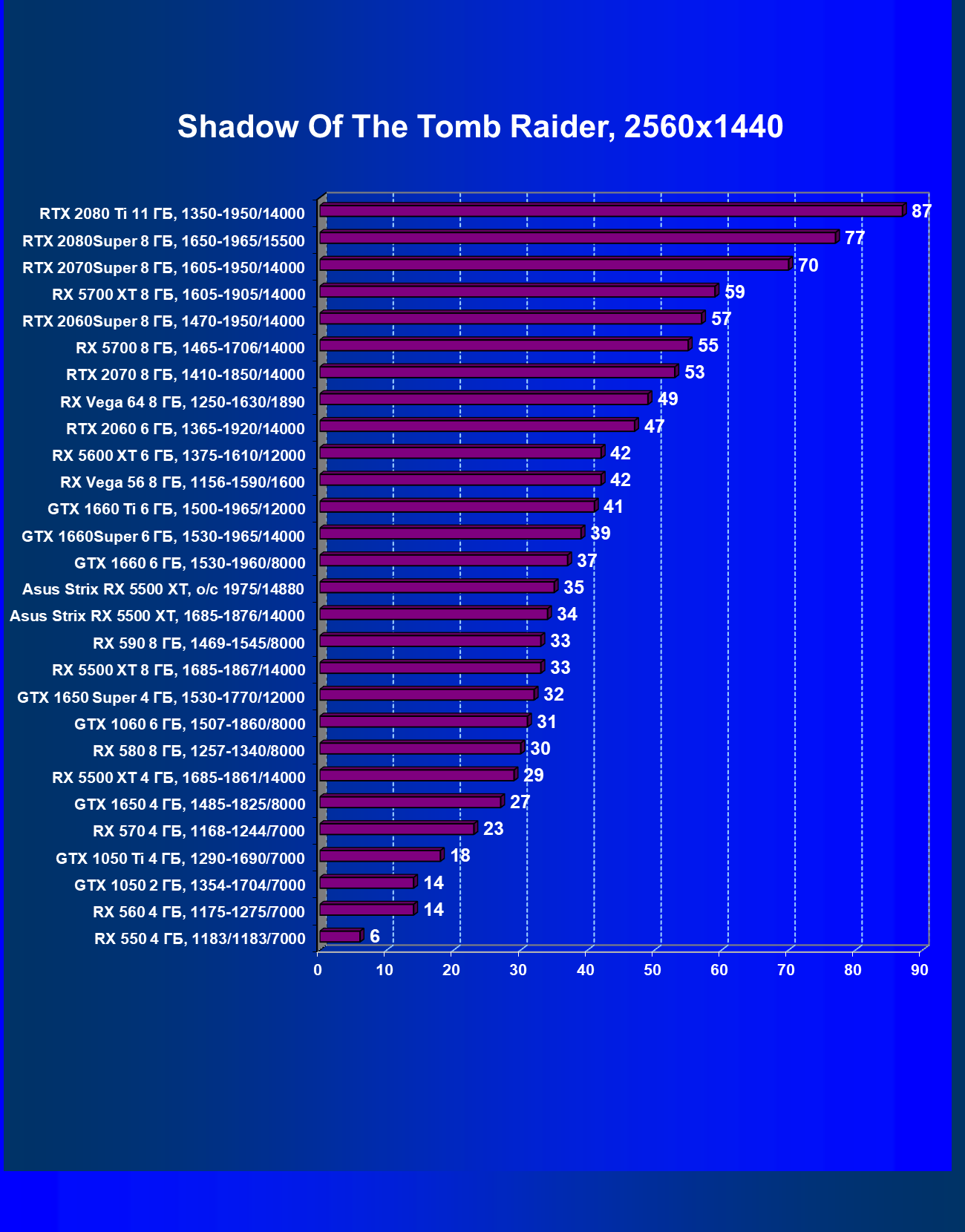 | 17 | Asus Strix RX 5500 XT, 1685—1876/14000 | 580 | 283 | 20 500 |