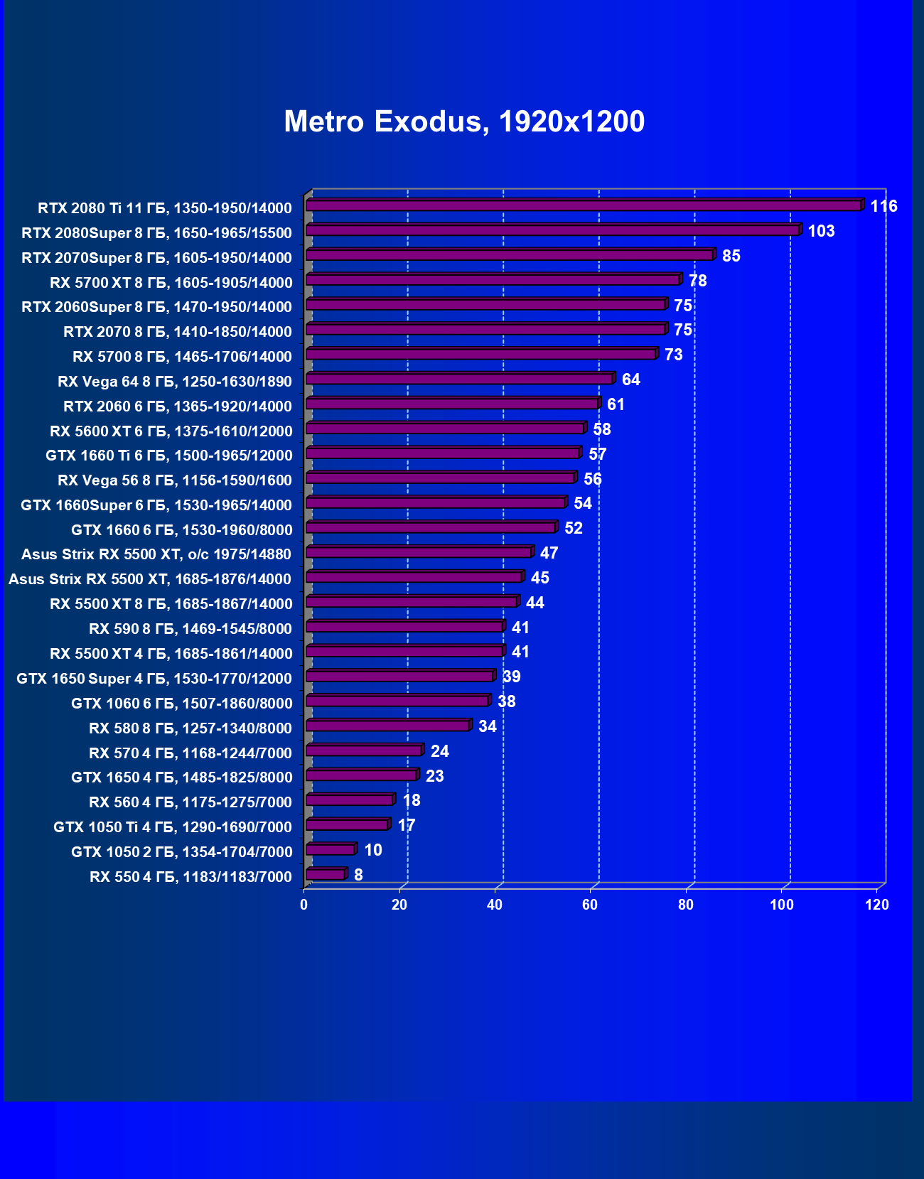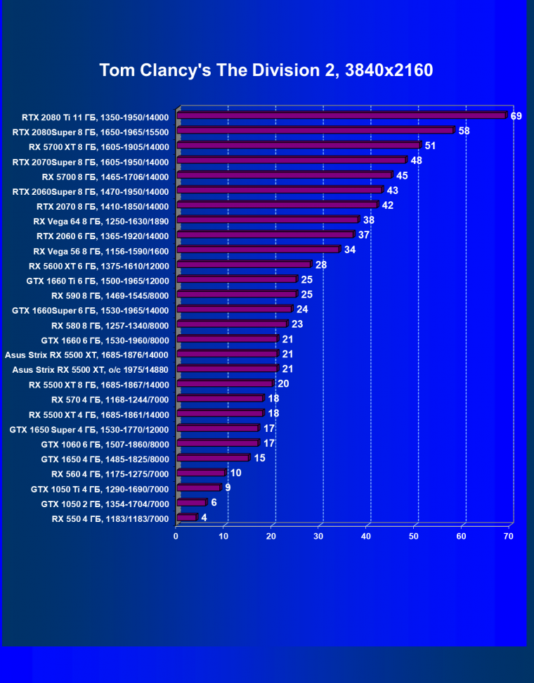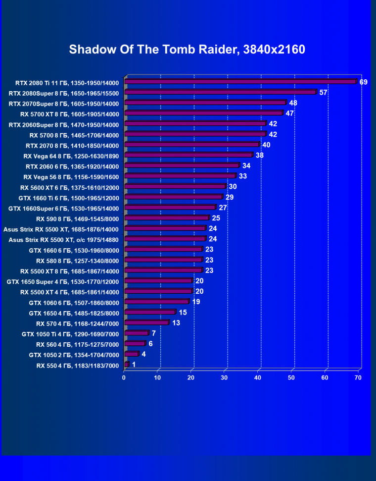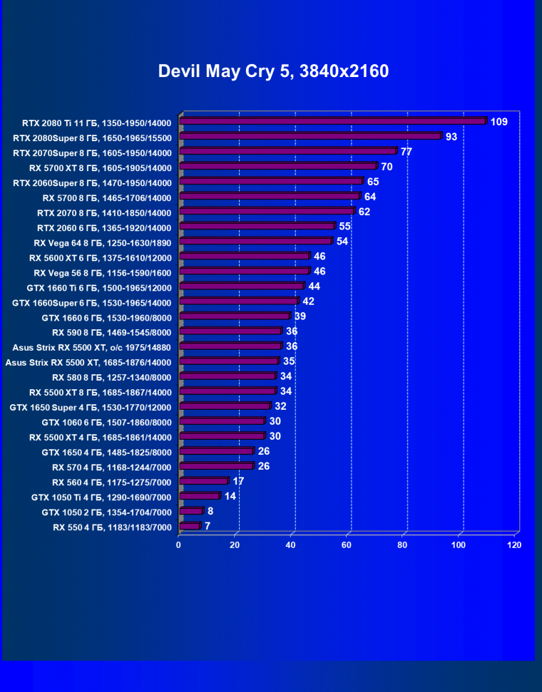 | 18 | RX 5500 XT 8 ГБ, 1685—1867/14000 | 560 | 346 | 16 200 |