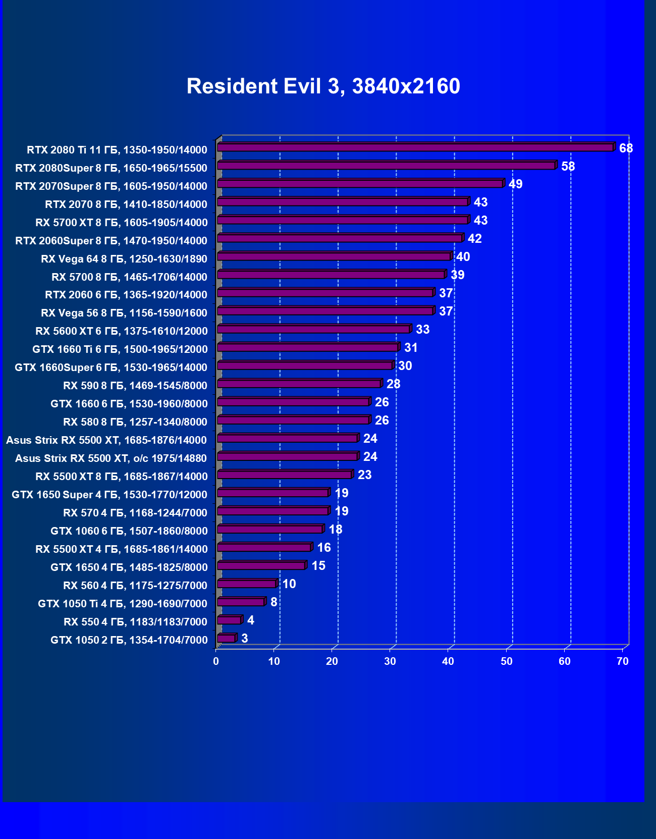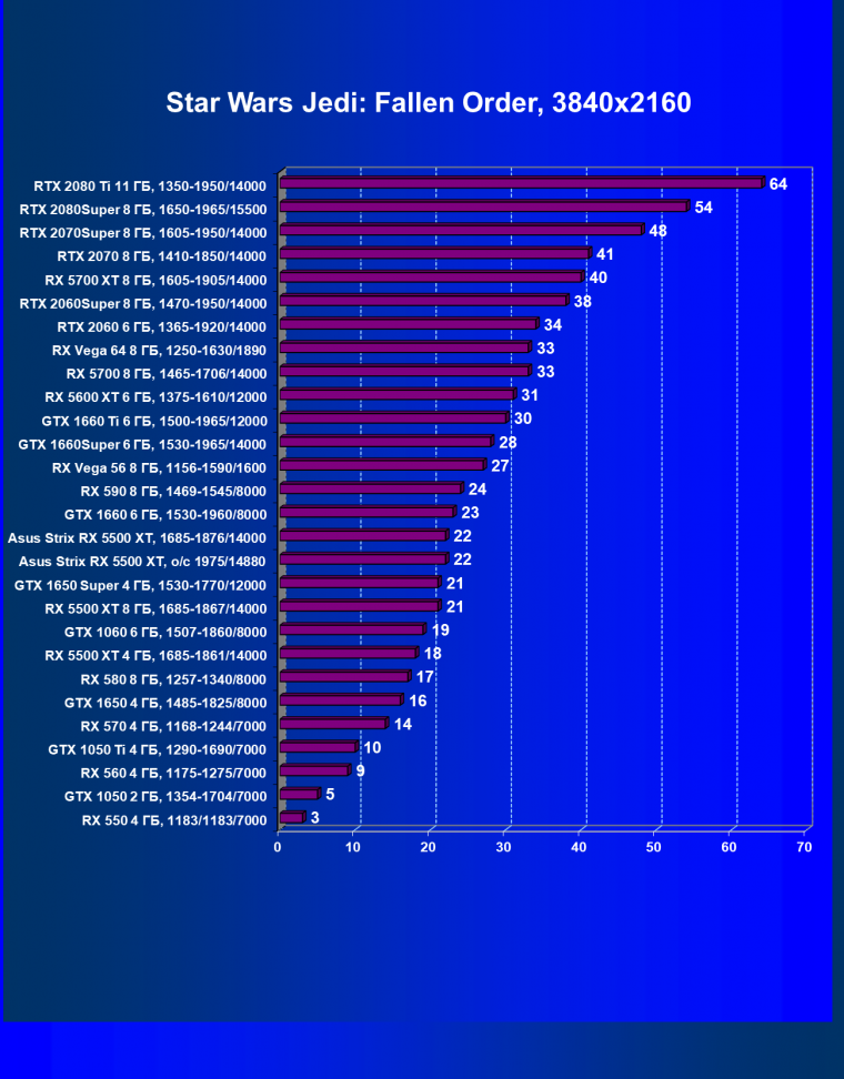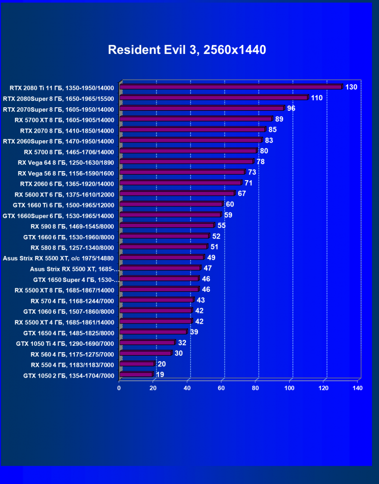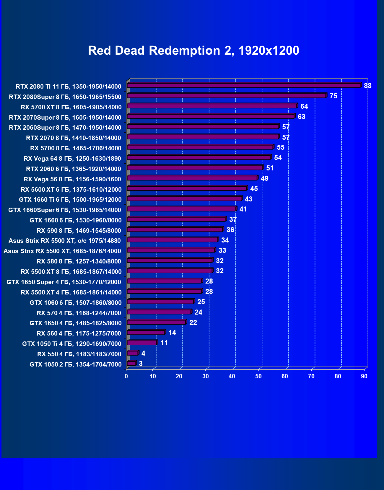 | 18 | RX 5500 XT 8 ГБ, 1685—1867/14000 | 560 | 346 | 16 200 |