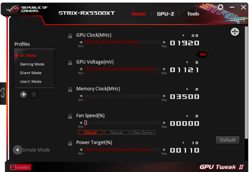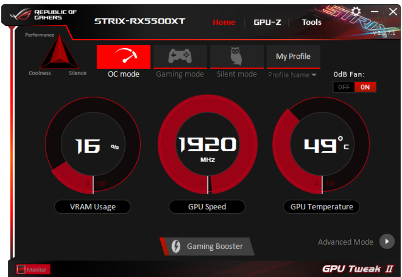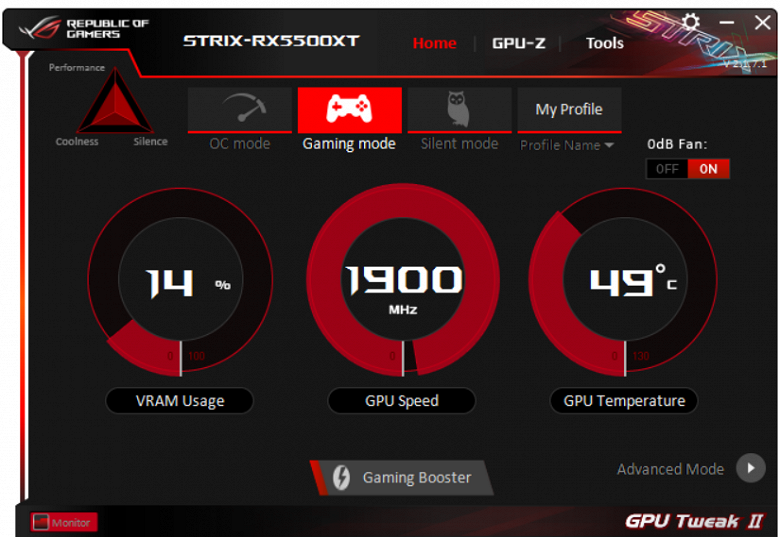 Управление работой карты обеспечивается с помощью фирменной утилиты Asus GPU Tweak II.