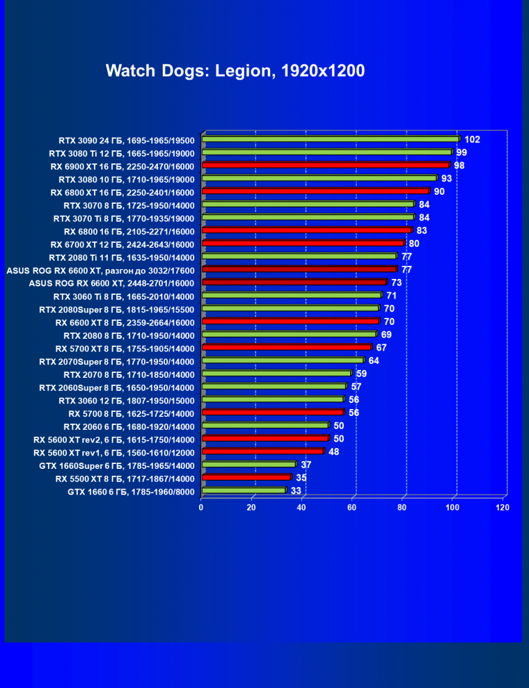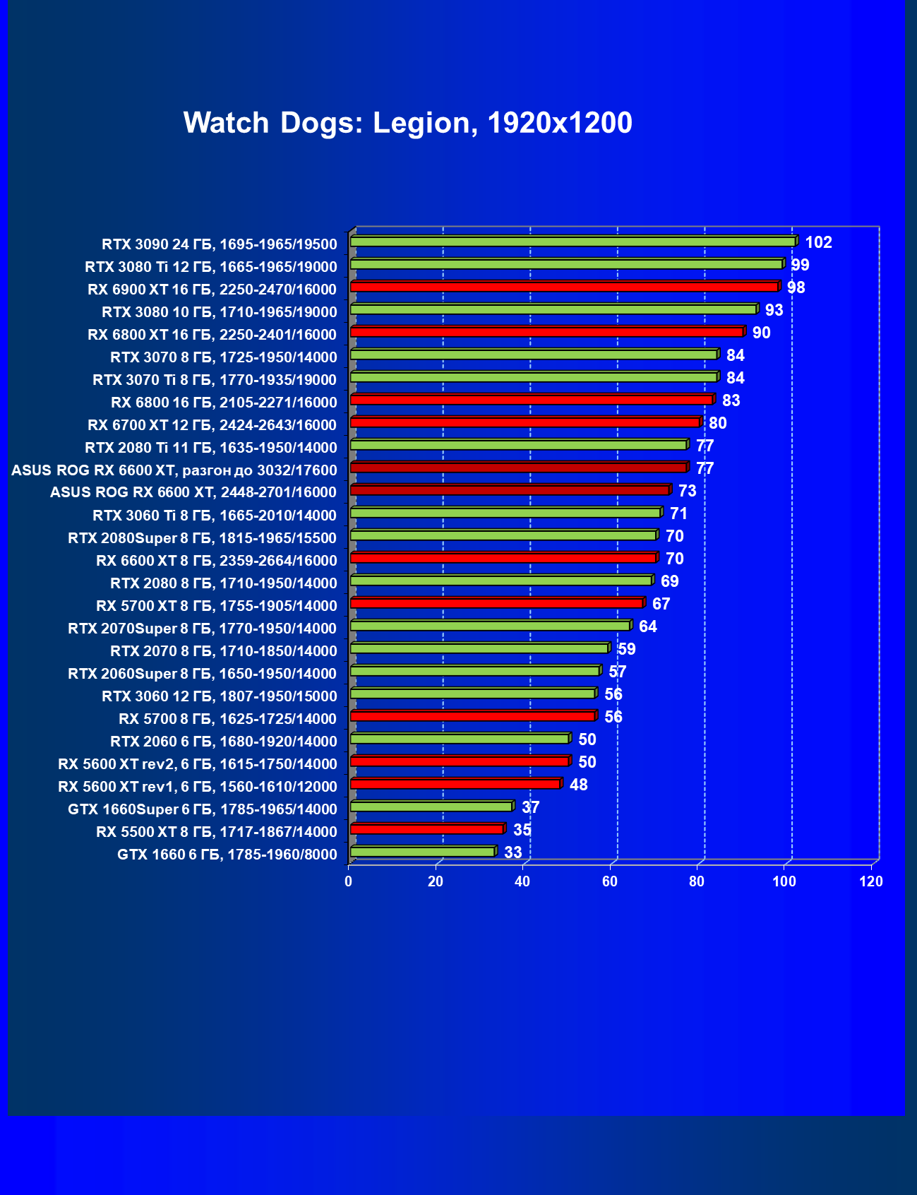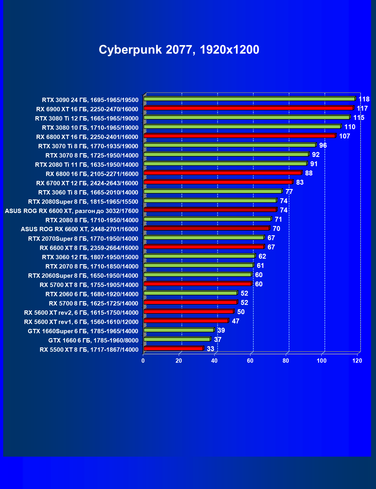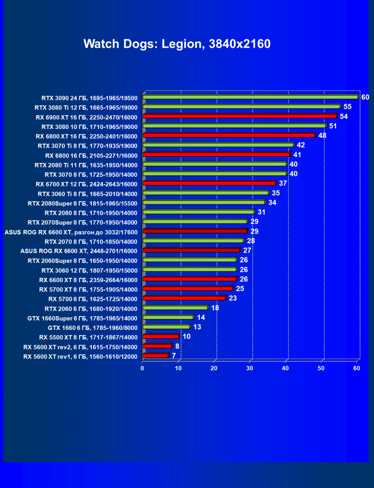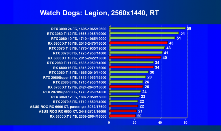 | 19 | RX 6600 XT 8 ГБ, 2359—2664/16000 | 70 | 12 | 59 000 |