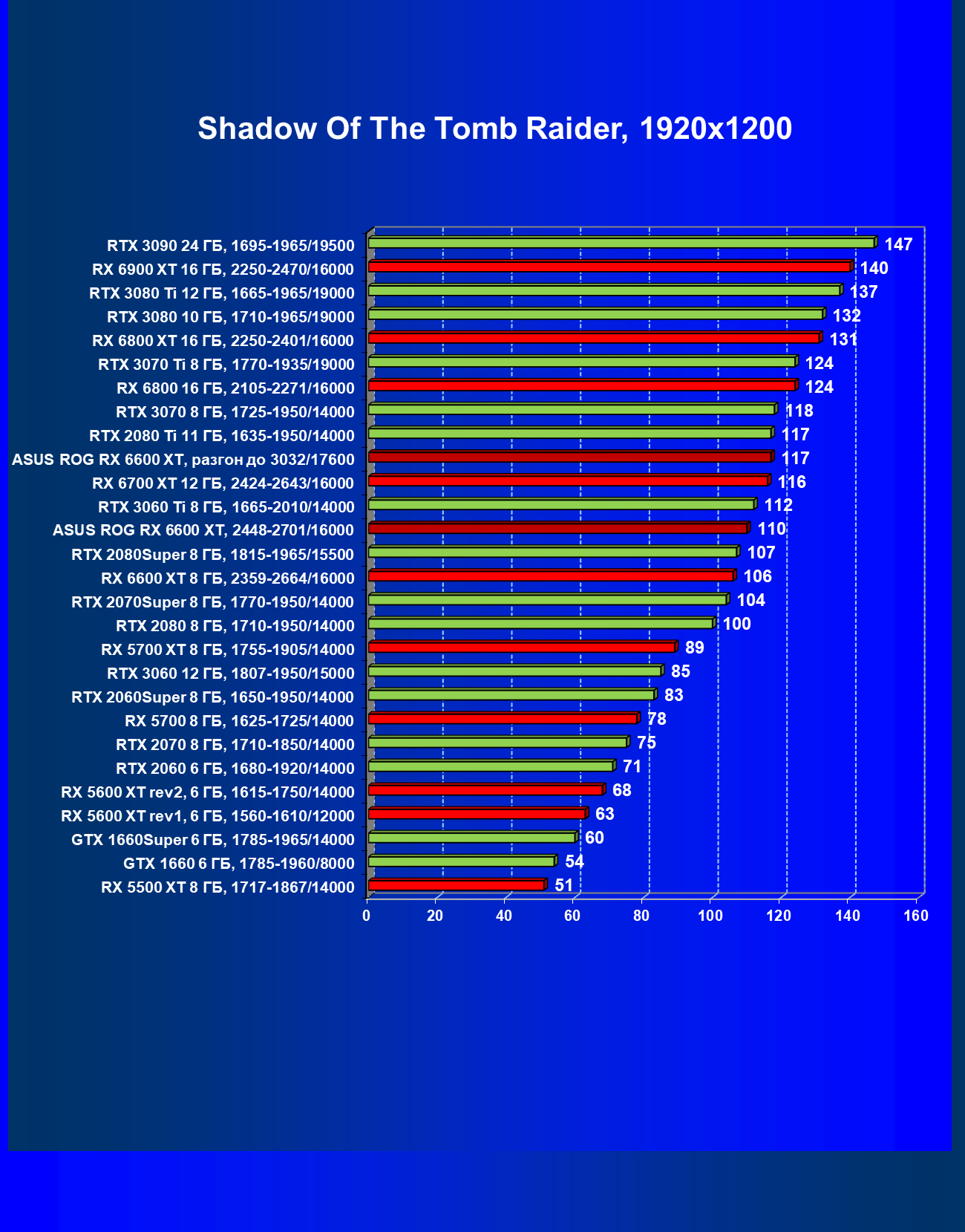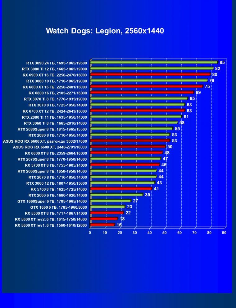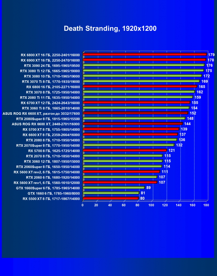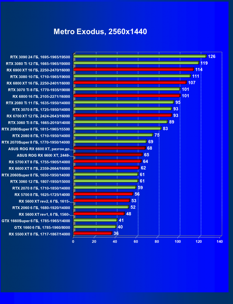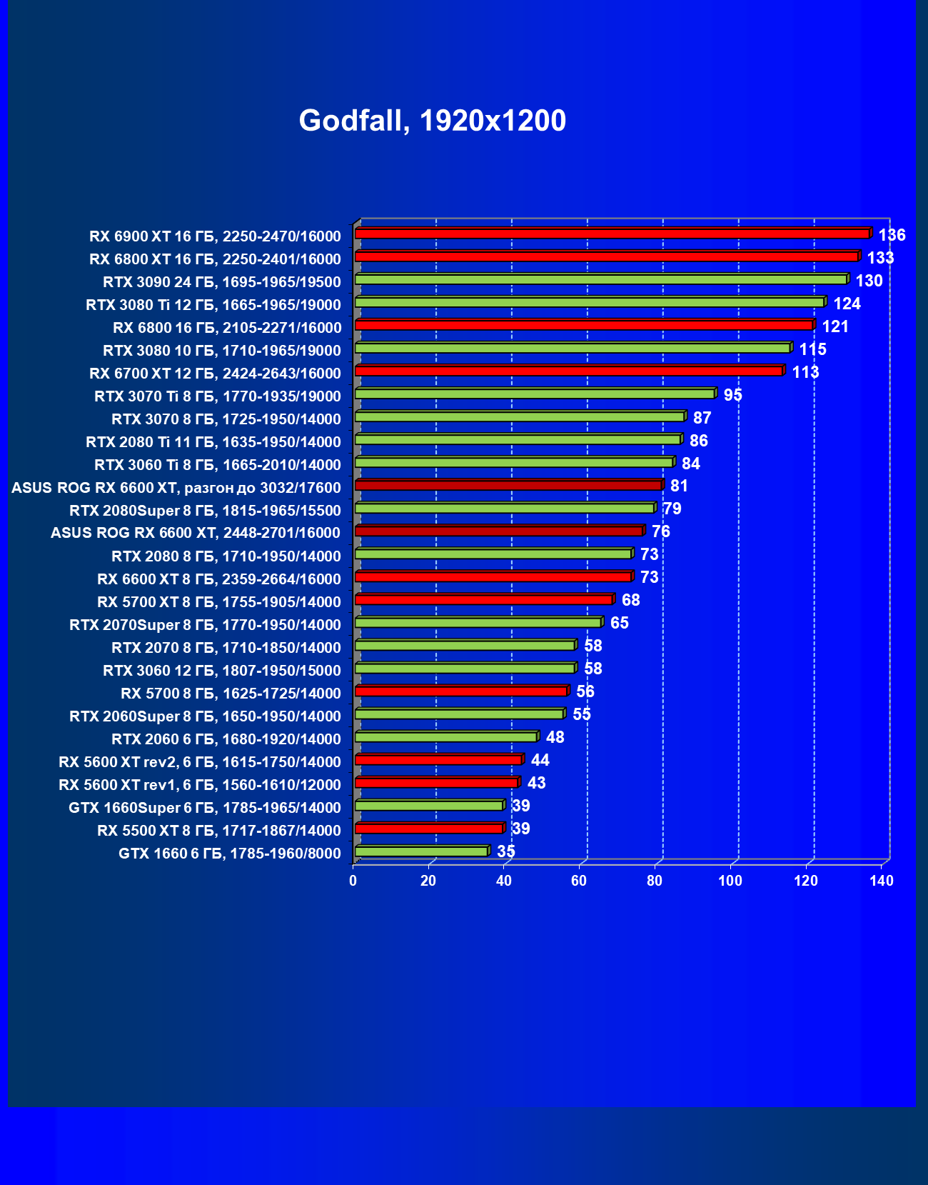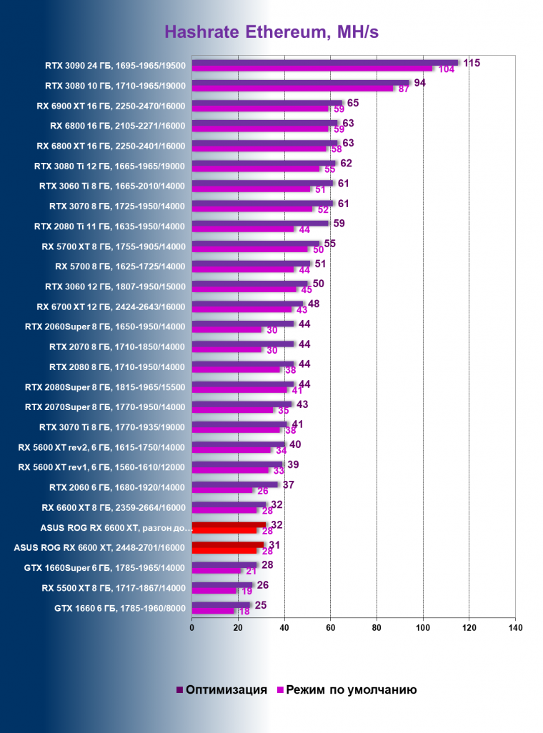| 18 | Asus ROG RX 6600 XT, 2448—2701/16000 | 80 | 12 | 65 000 |