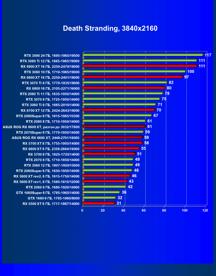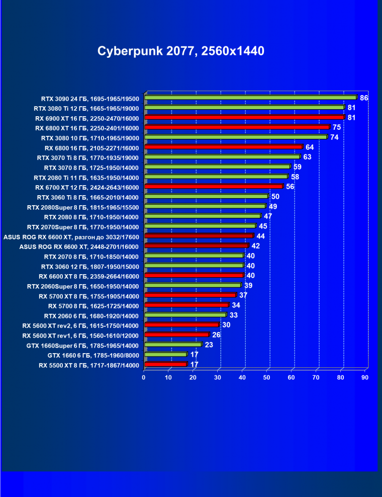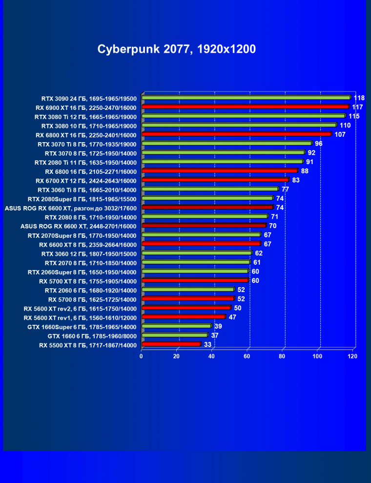 | 17 | Asus ROG RX 6600 XT, разгон до 3032/17600 | 80 | 12 | 65 000 |