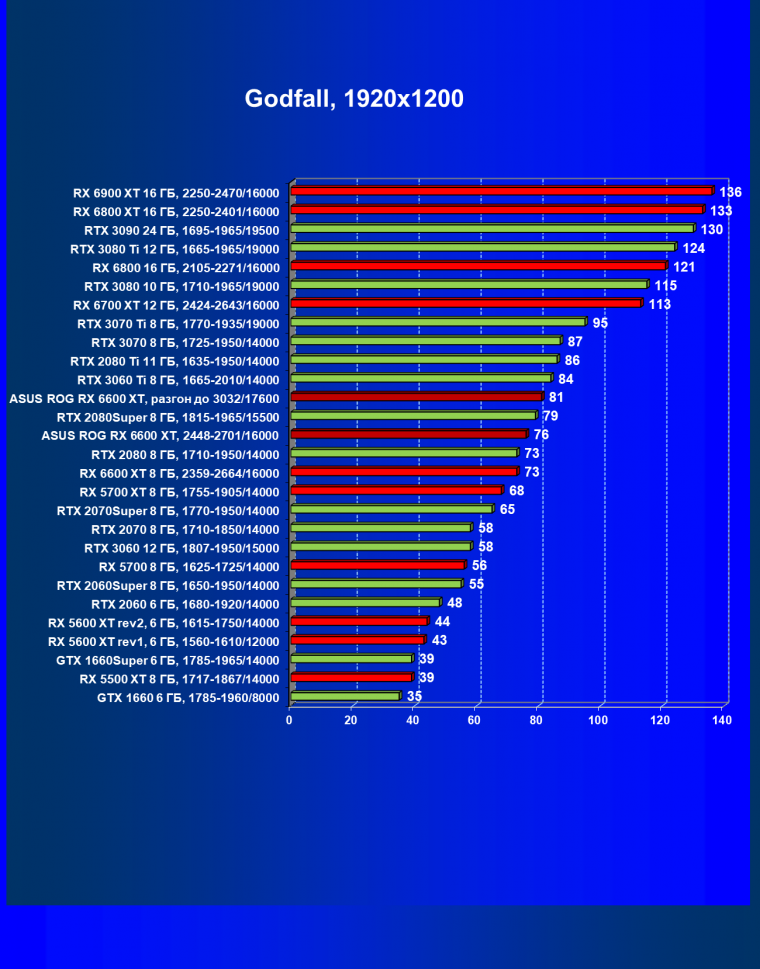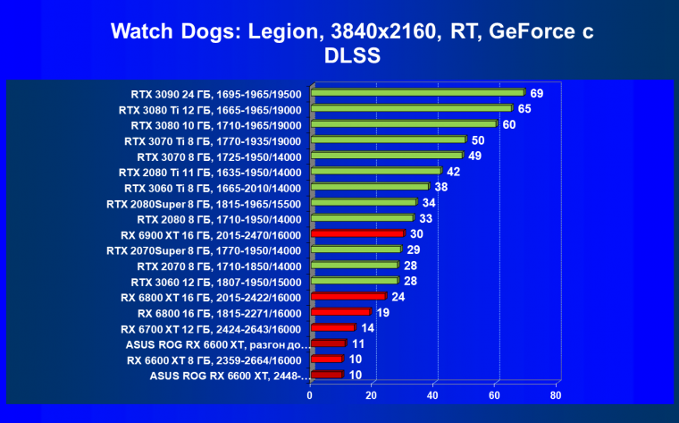 | 13 | Asus ROG RX 6600 XT, 2448—2701/16000 | 12 | 80 | 65 000 |