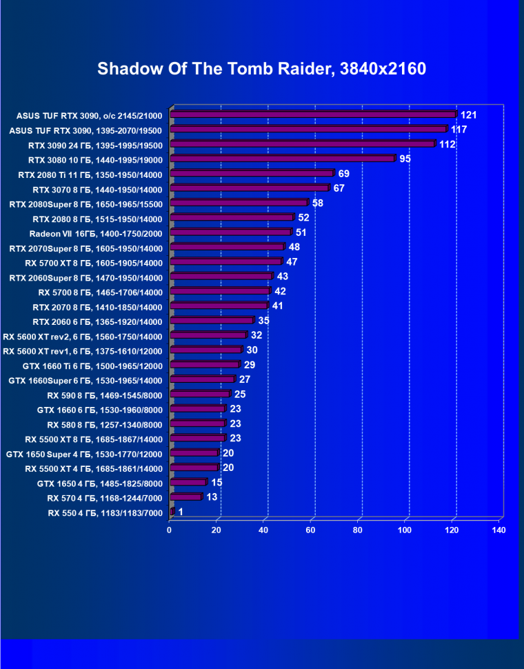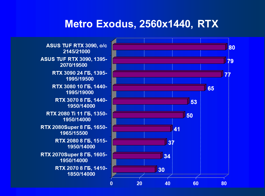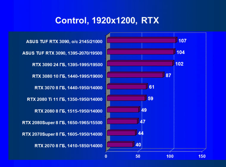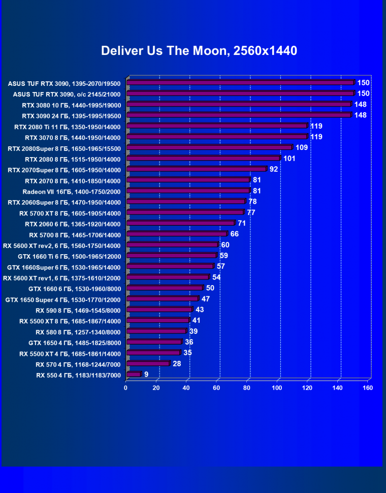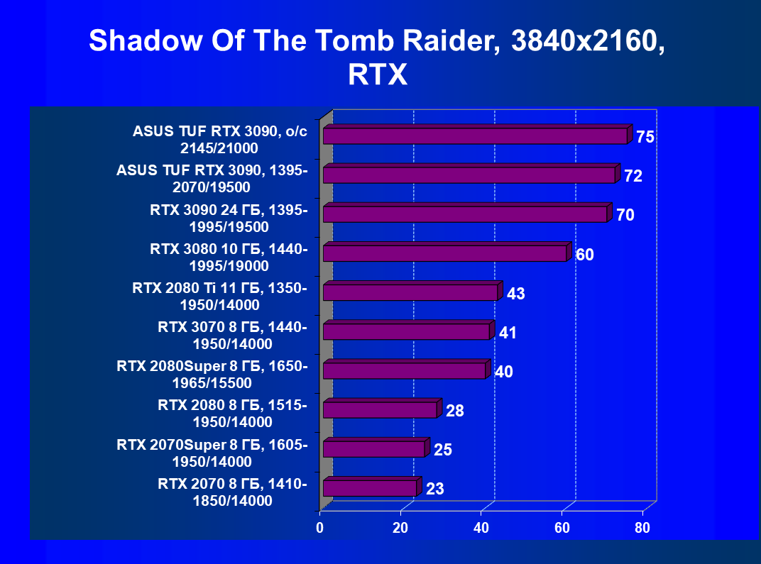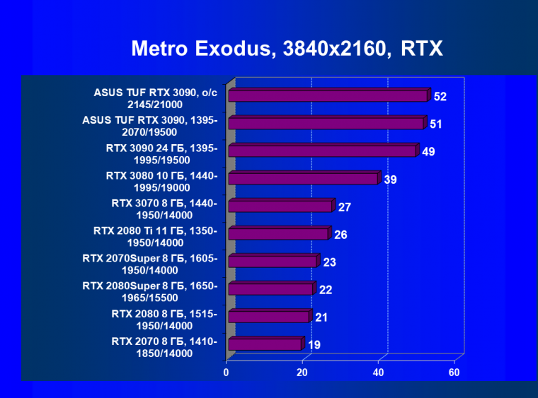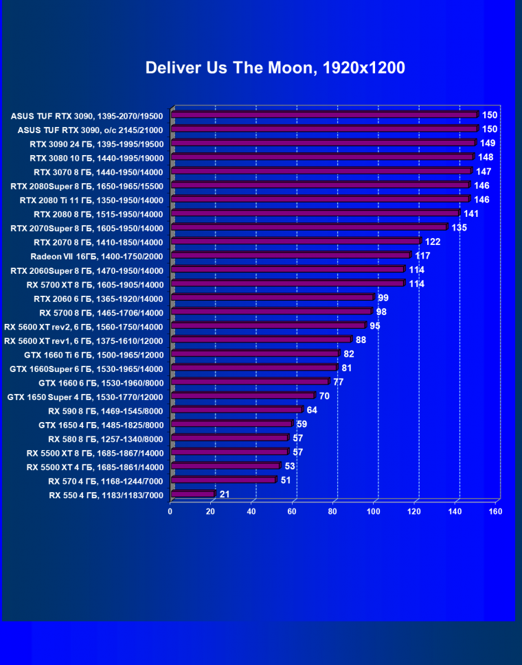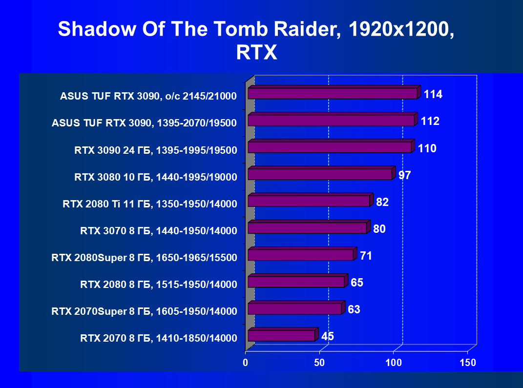 | 11 | Asus TUF RTX 3090, 1395—2070/19500 | 344 | 5164 | 150 000 |