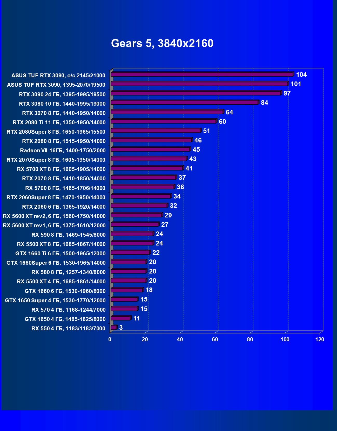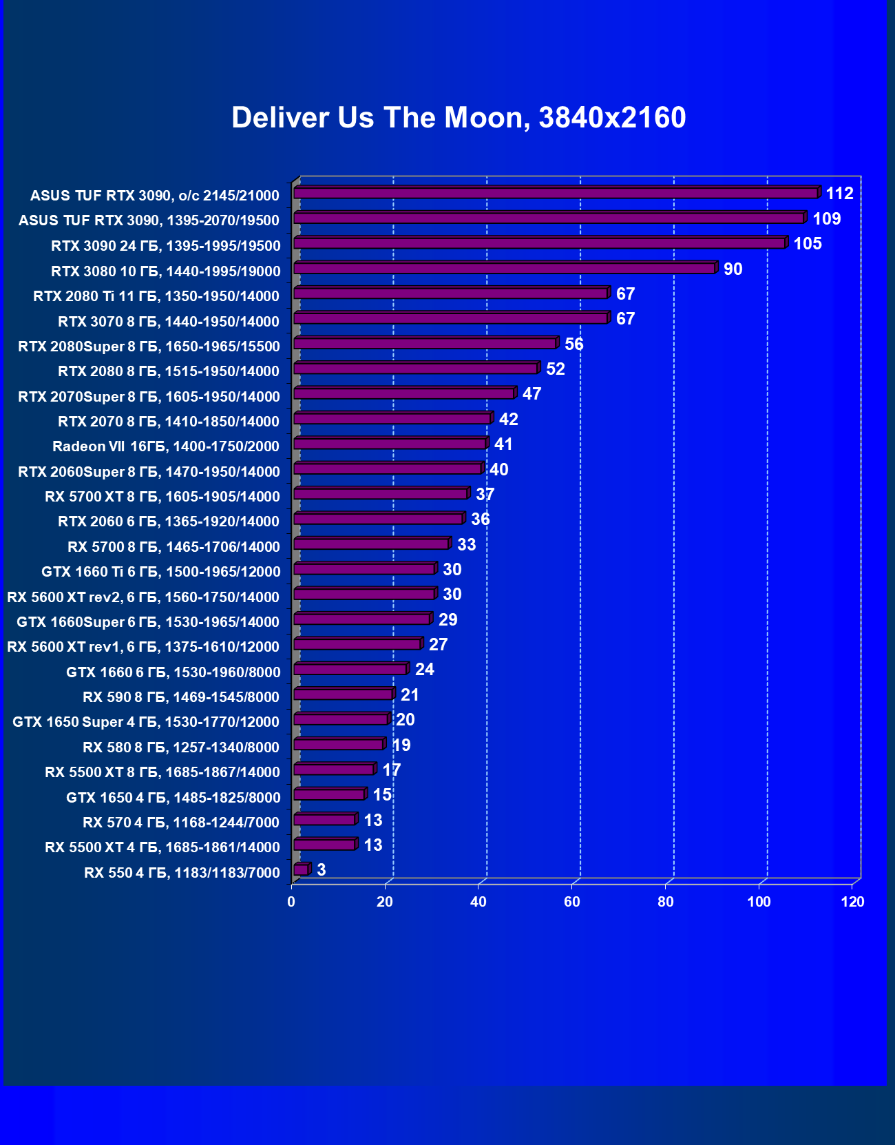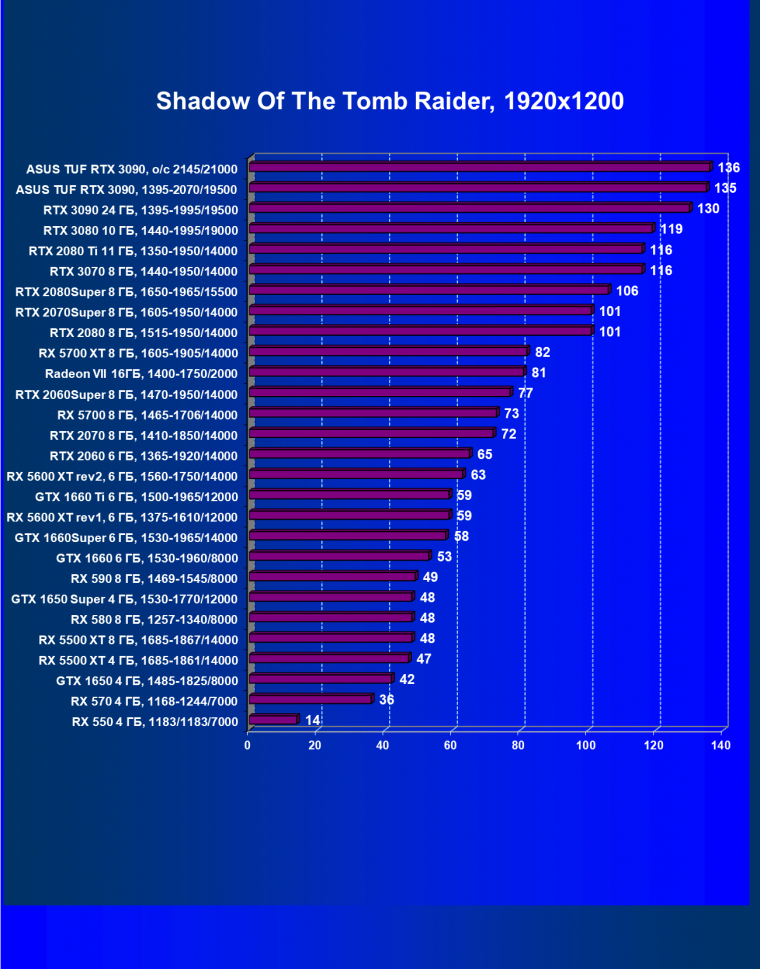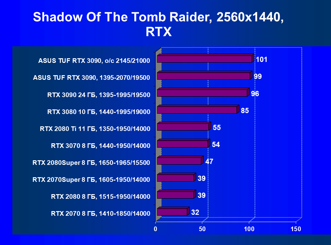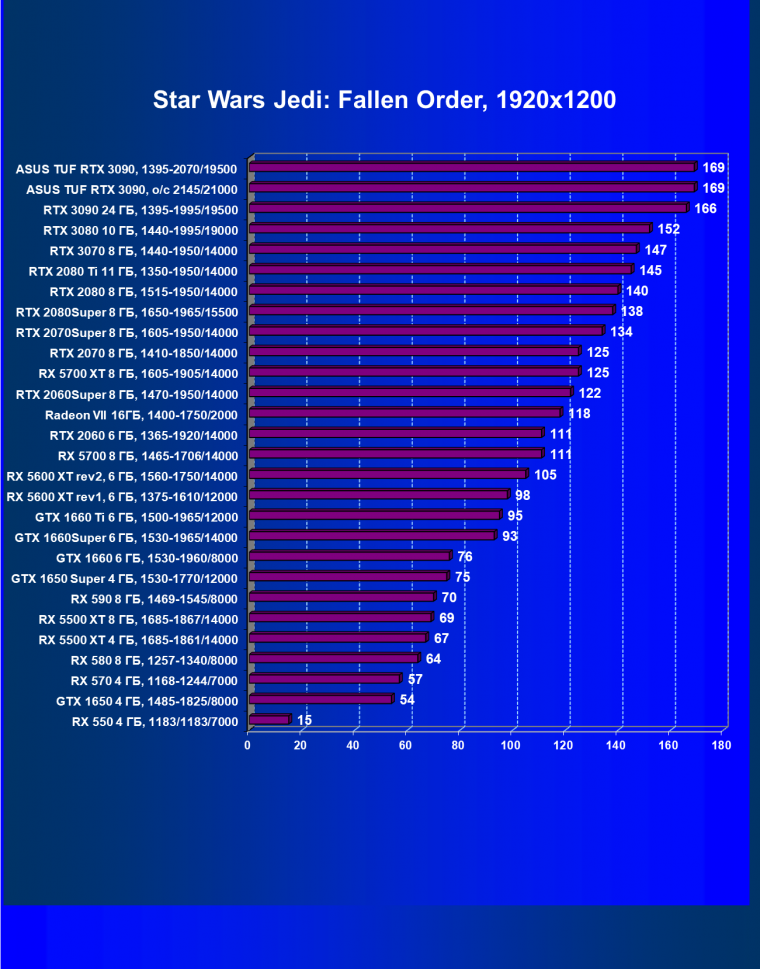| 11 | Asus TUF RTX 3090, 1395—2070/19500 | 344 | 5164 | 150 000 |