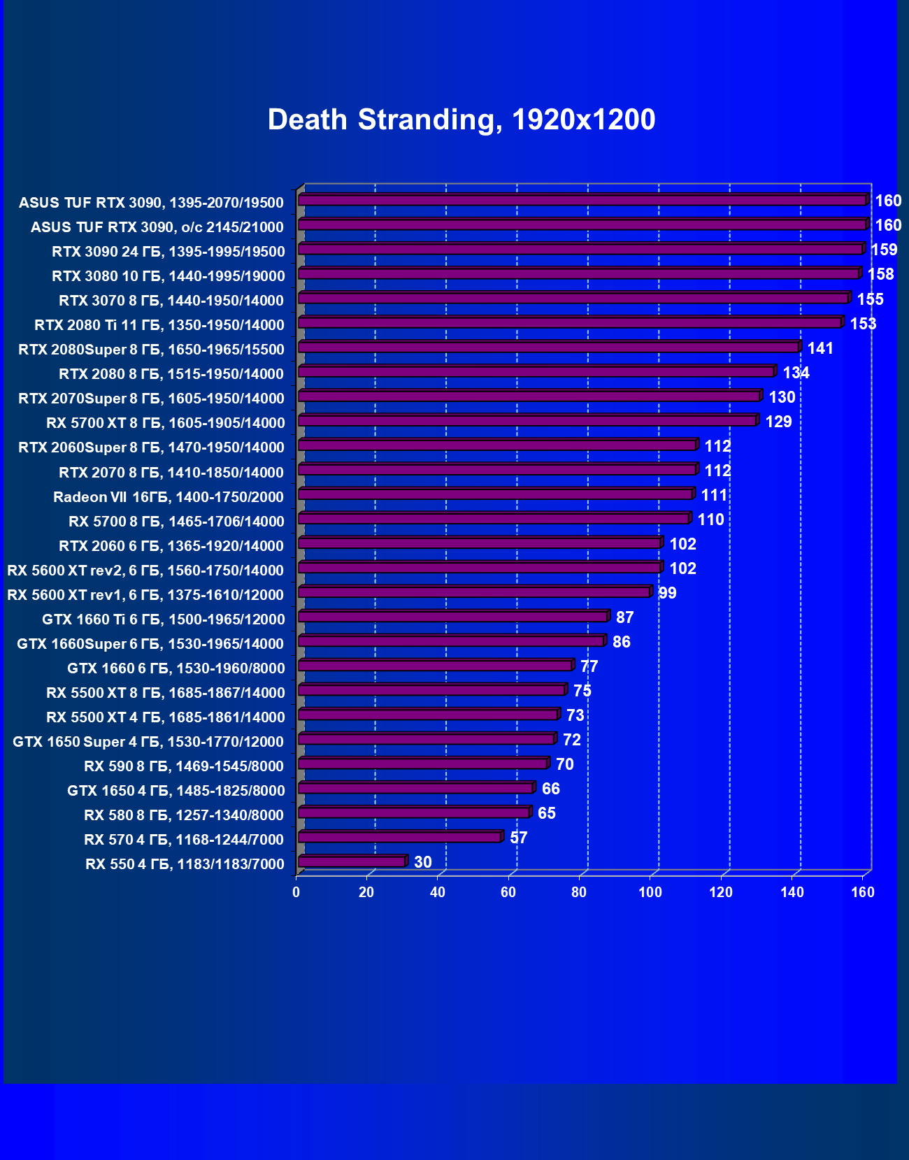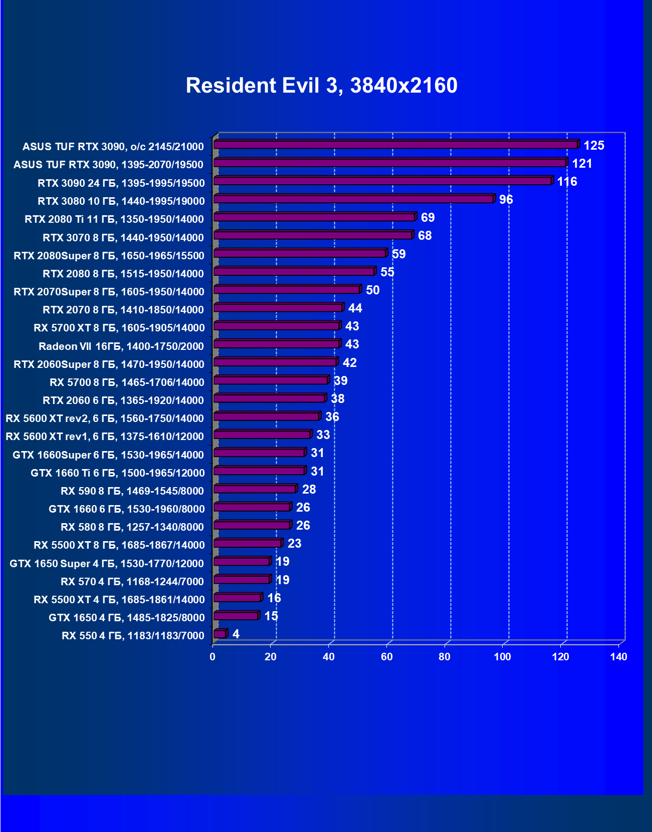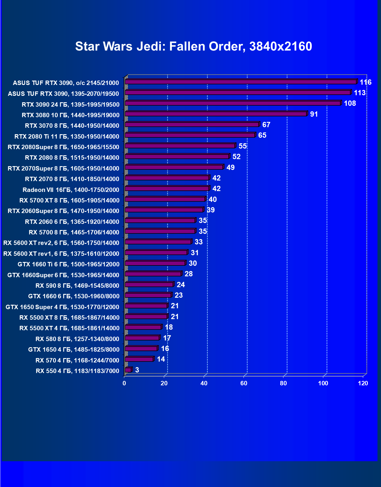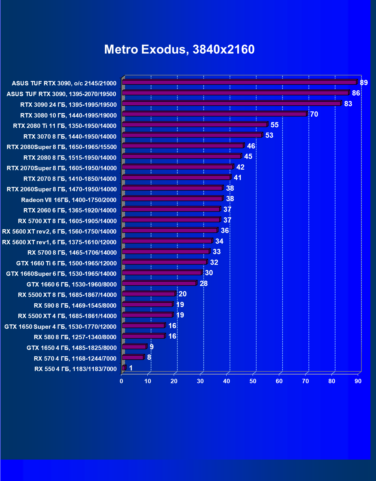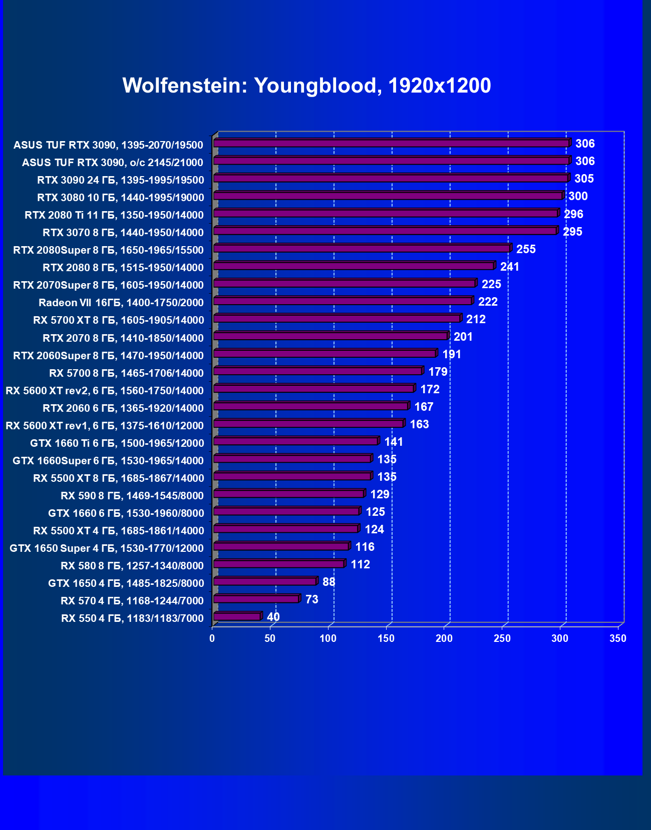 | 11 | Asus TUF RTX 3090, 1395—2070/19500 | 344 | 5164 | 150 000 |