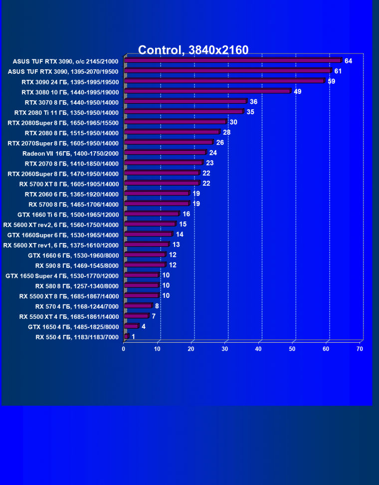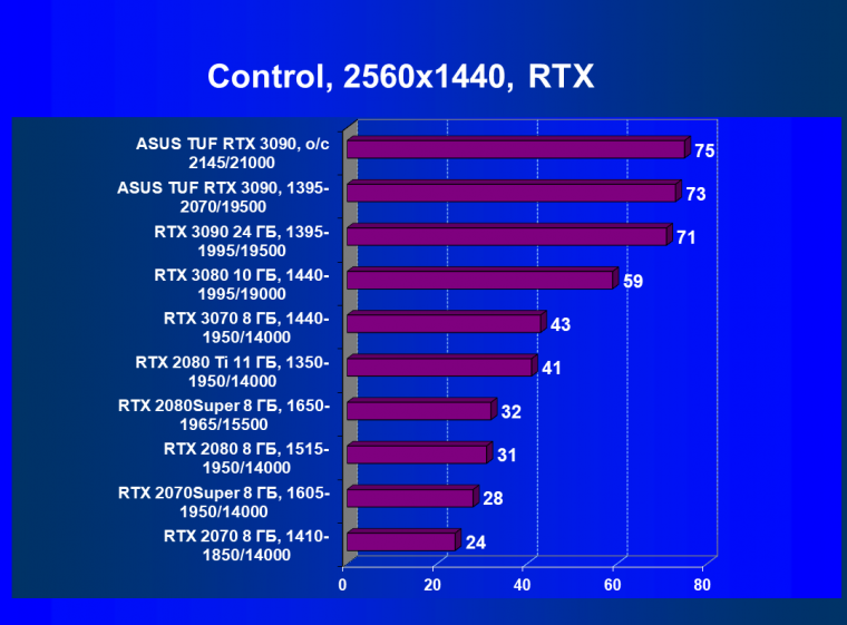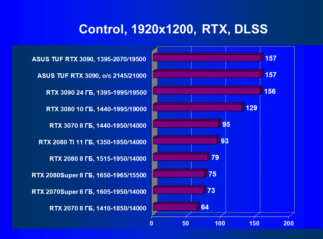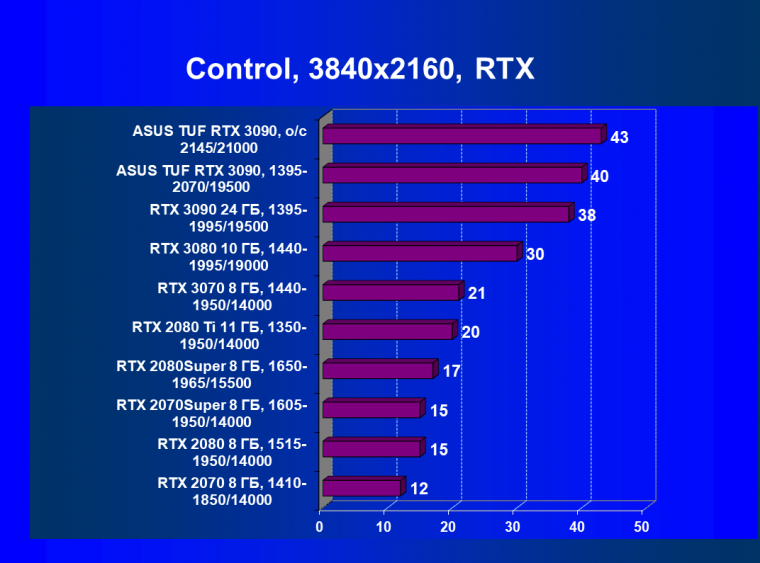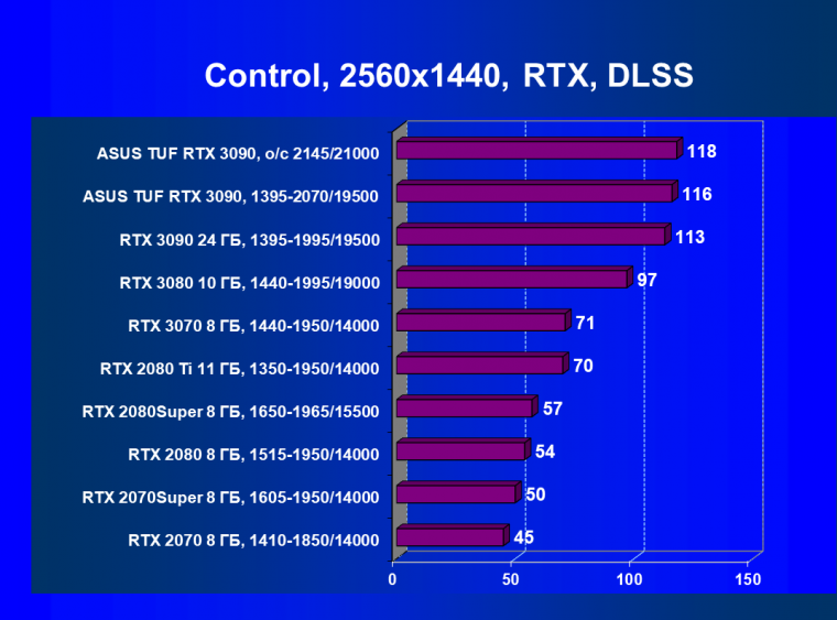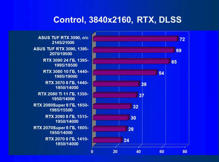 Стоит снова повторить, что наличие большого объема памяти и прекрасная производительность дает GeForce RTX 3090 право называться первым видеоускорителем игрового класса для разрешения 8К. Игры должны поддерживать умный антиалиасинг DLSS 2.0 (причем именно для разрешения 4К и выше), тогда комфорт при игре на огромных 8К-телевизорах будет обеспечен при сохранении всех настроек графики по максимуму.