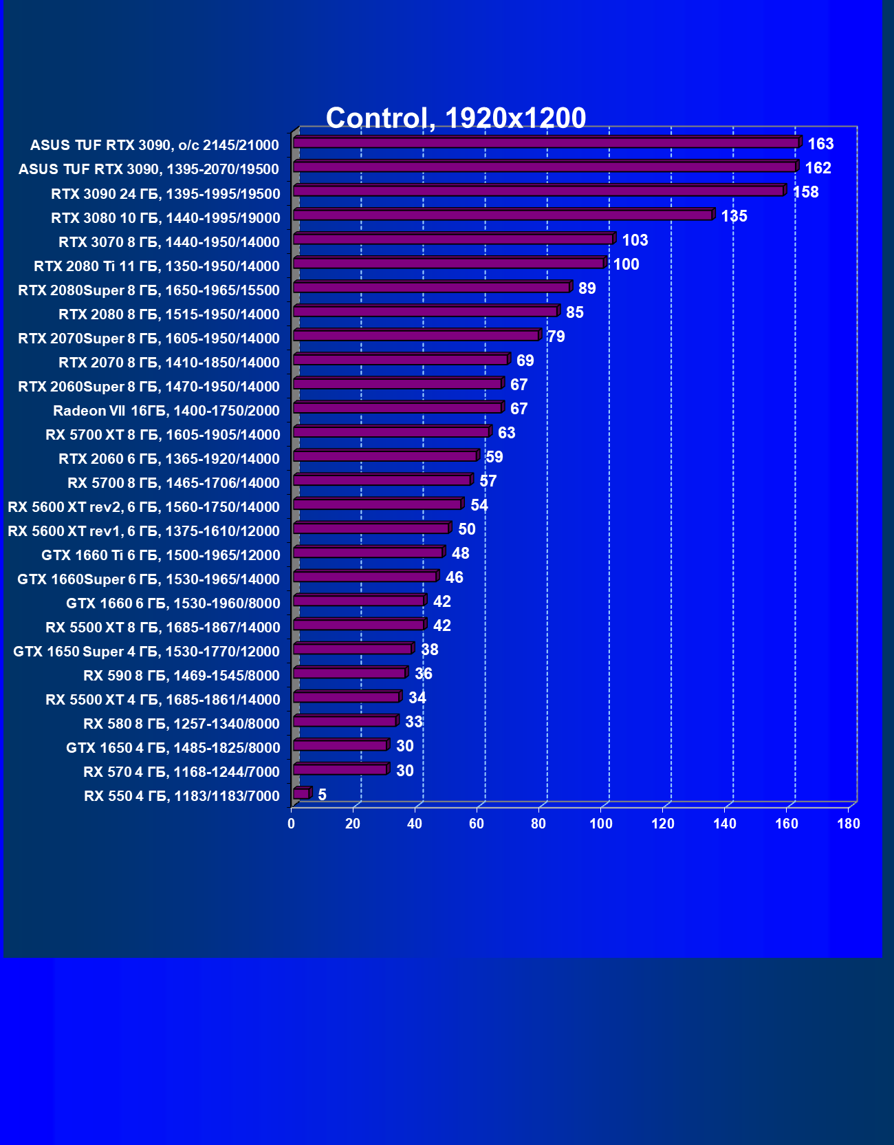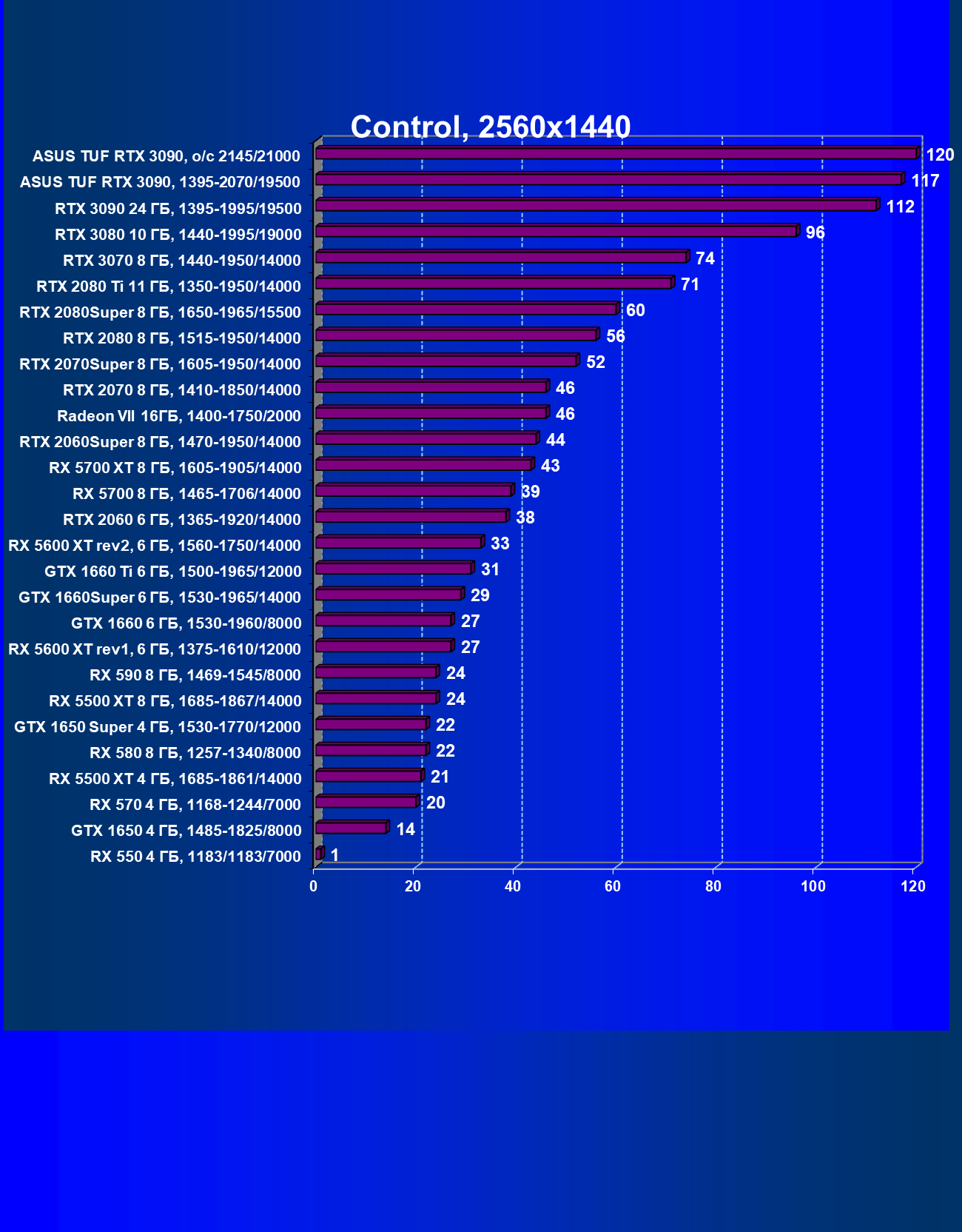 | 01 | RTX 3080 10 ГБ, 1440—1995/19000 | 617 | 4195 | 68 000 |