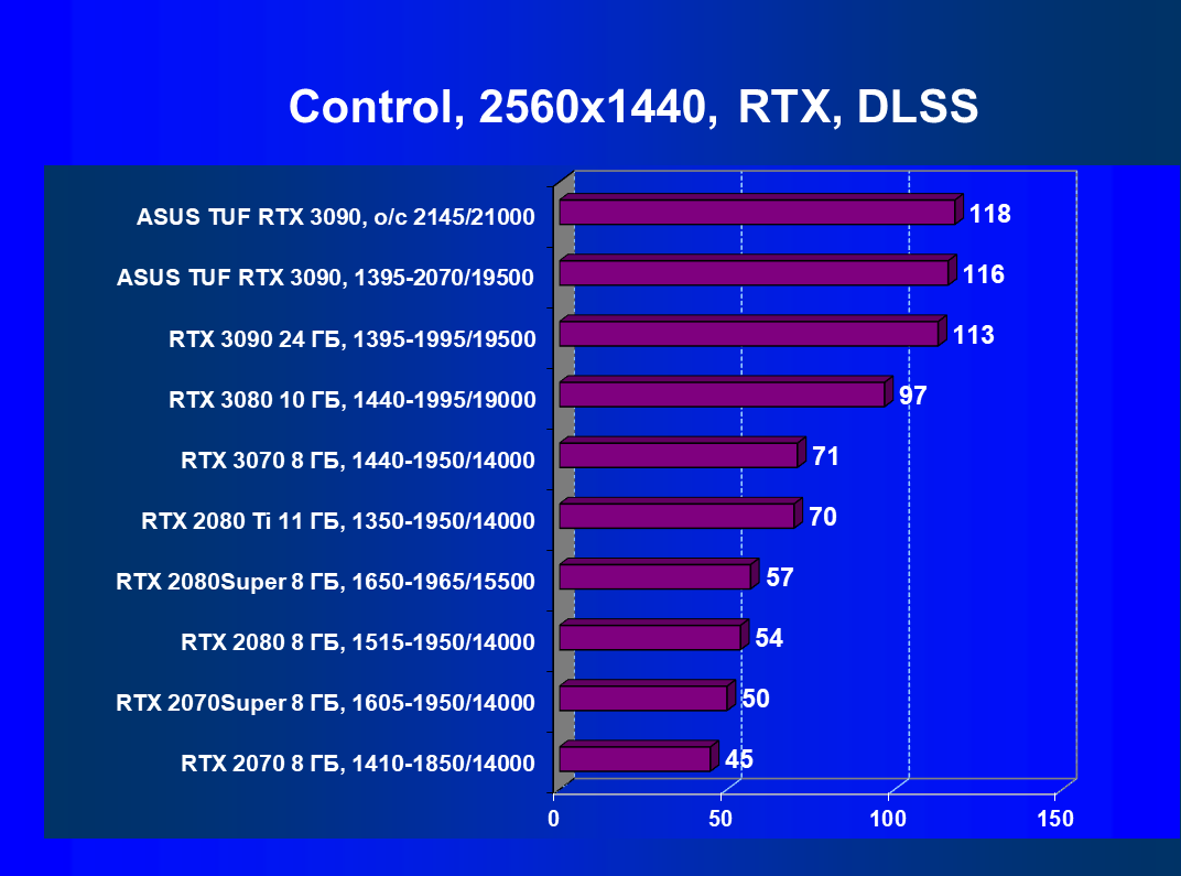 | 01 | Asus TUF RTX 3090, разгон до 2145/21000 | 2580 | 172 | 150 000 |