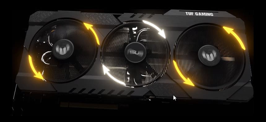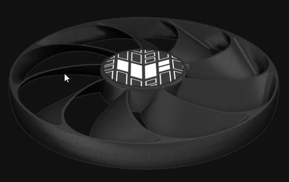 Центральный вентилятор вращается в противоположную сторону относительно крайних, что обеспечивает некий эффект «шестеренок», помогая бороться с турбулентностью потока воздуха.